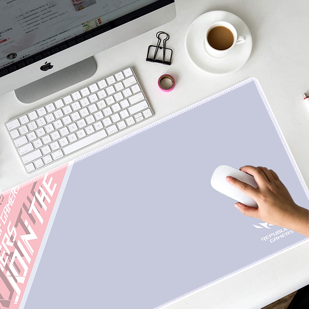 ROG Mousepad Pink Extended Gaming Mousepad Stitched Edge Deskpad Deskmat