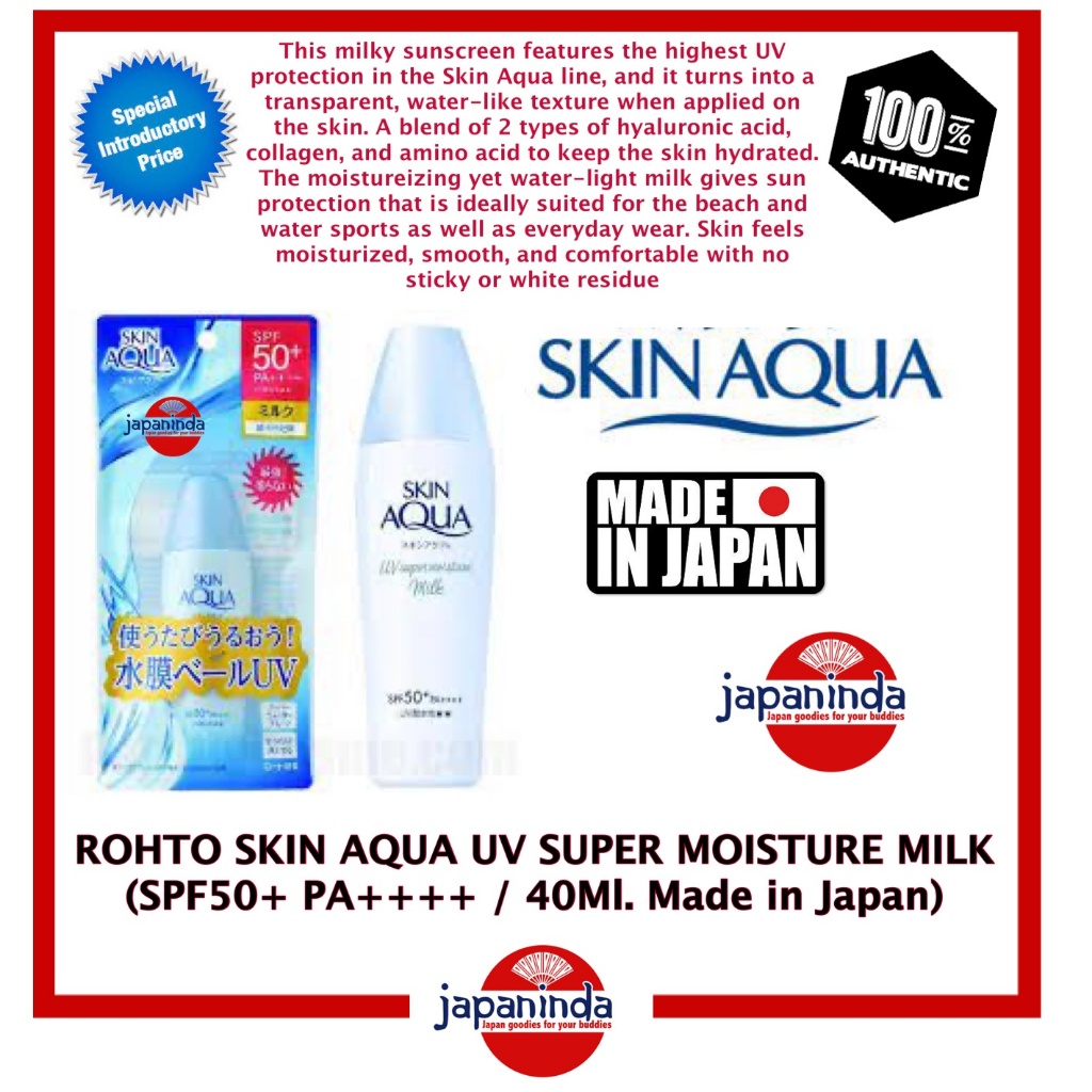 ROHTO SKIN AQUA UV SUPER MOISTURE MILK (40ml.) SPF50+ PA++++ 100% AUTHENTIC/MADE IN JAPAN