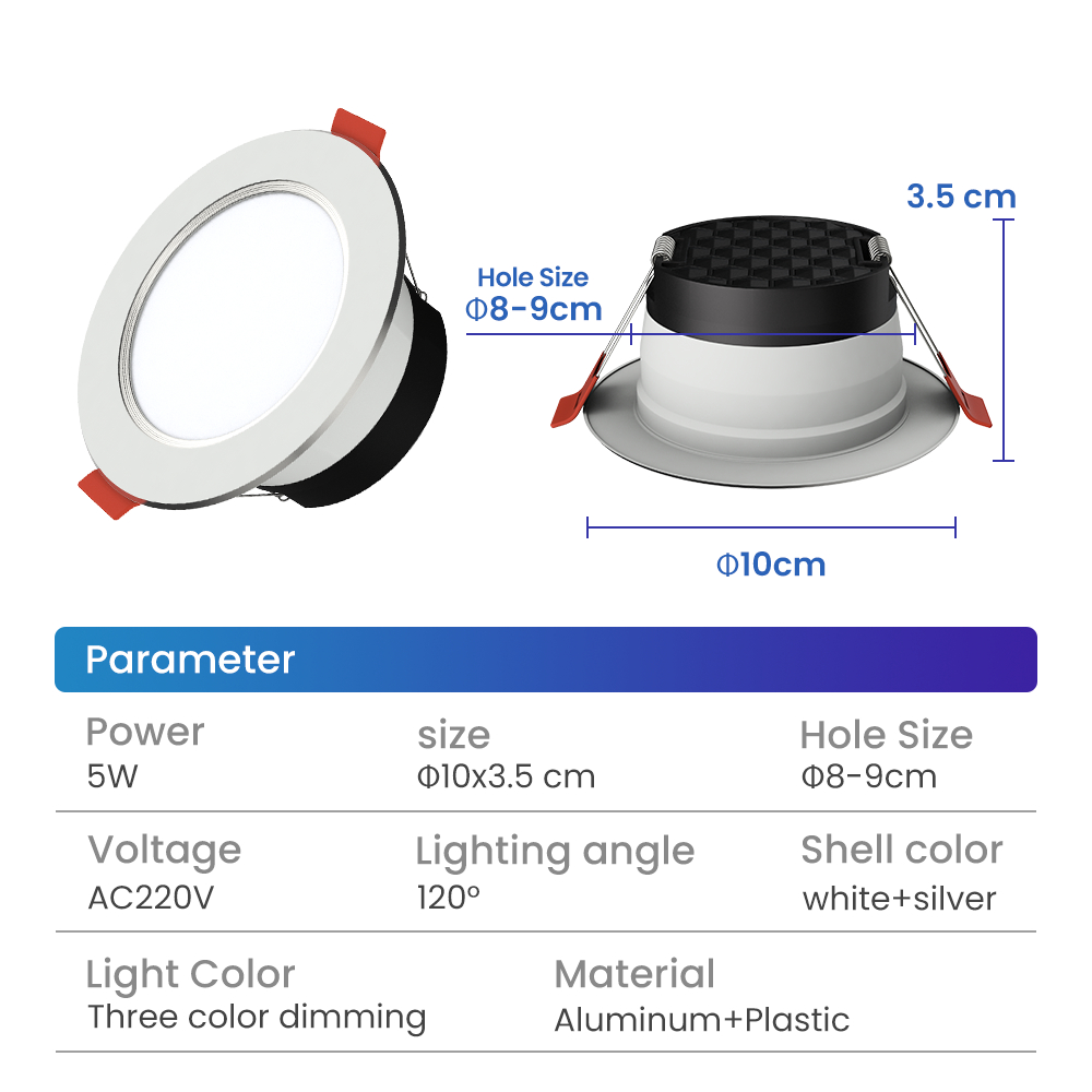 RONG RIVER 5W Pin Light LED Ceiling 3 Color Ceiling Light Indoor Recessed Downlight