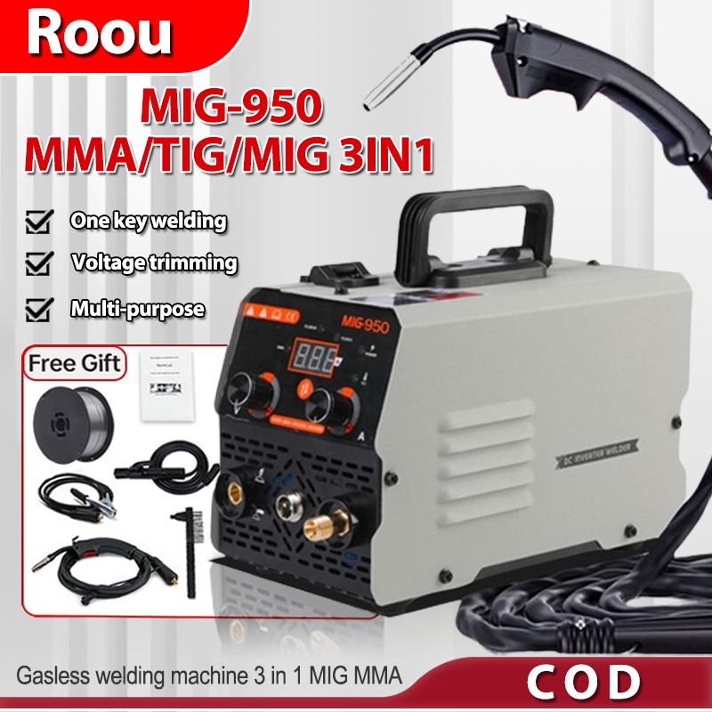 ROOU MIG Welding Machine Portable Inverter Welding Machine MMA/TIG/MIG-950 3IN1 Gasless Welder