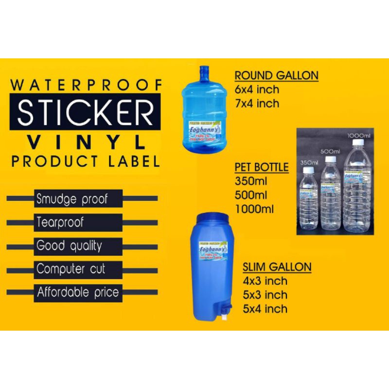 ROUND GALLON WATERPROOF VINYL STICKER (6x4 inch/7x4 inch) 100's/set