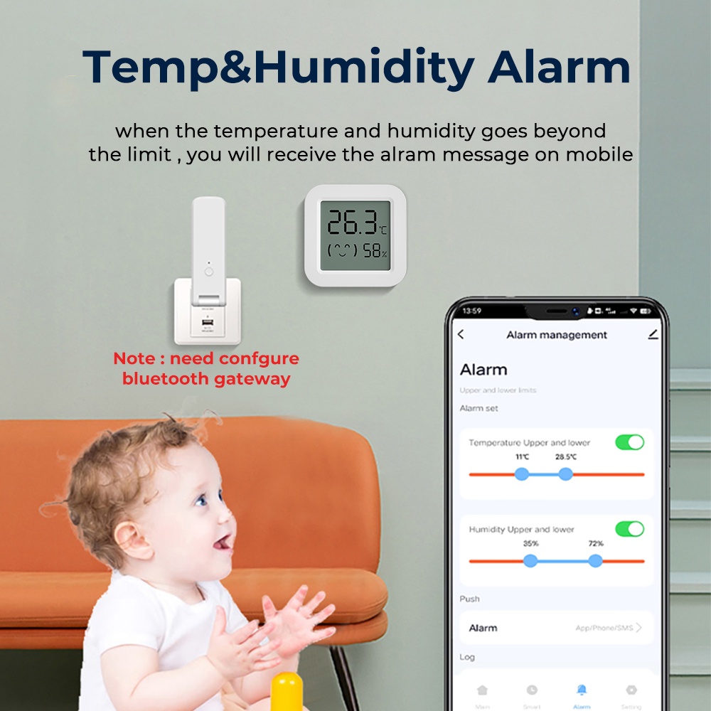ROVF Tuya Temperature Humidity Sensor Mini LCD Digital Display Compatible with Bluetooth APP Remote Control Thermometer Hygrometer