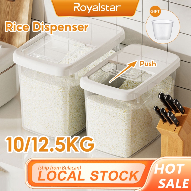 ROYALSTAR Rice Dispenser Storage Organizer With Lid And Measuring Cup Food Container Rice Bucket