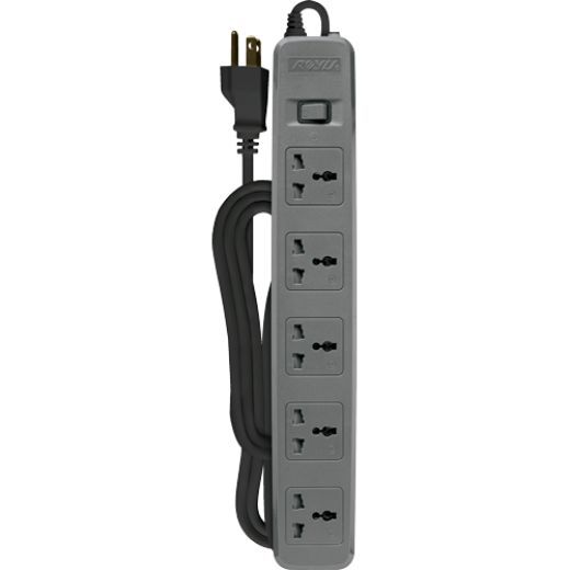 ROYU 5 Gang Power Extension Cord with One Master Switch - Gray