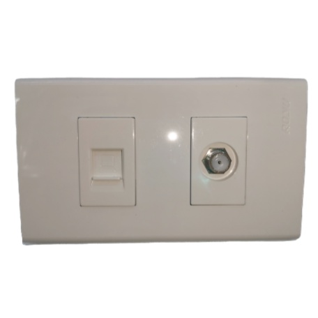 ROYU LAN Outlet and Cable TV Socket with 2 Gang Plate Wide Series White - RWP2/RWX2/RWX3