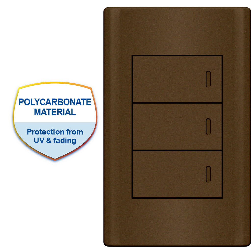 ROYU Plano 3 Gang Switch Set - Dark Wood