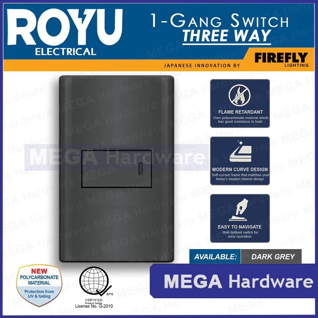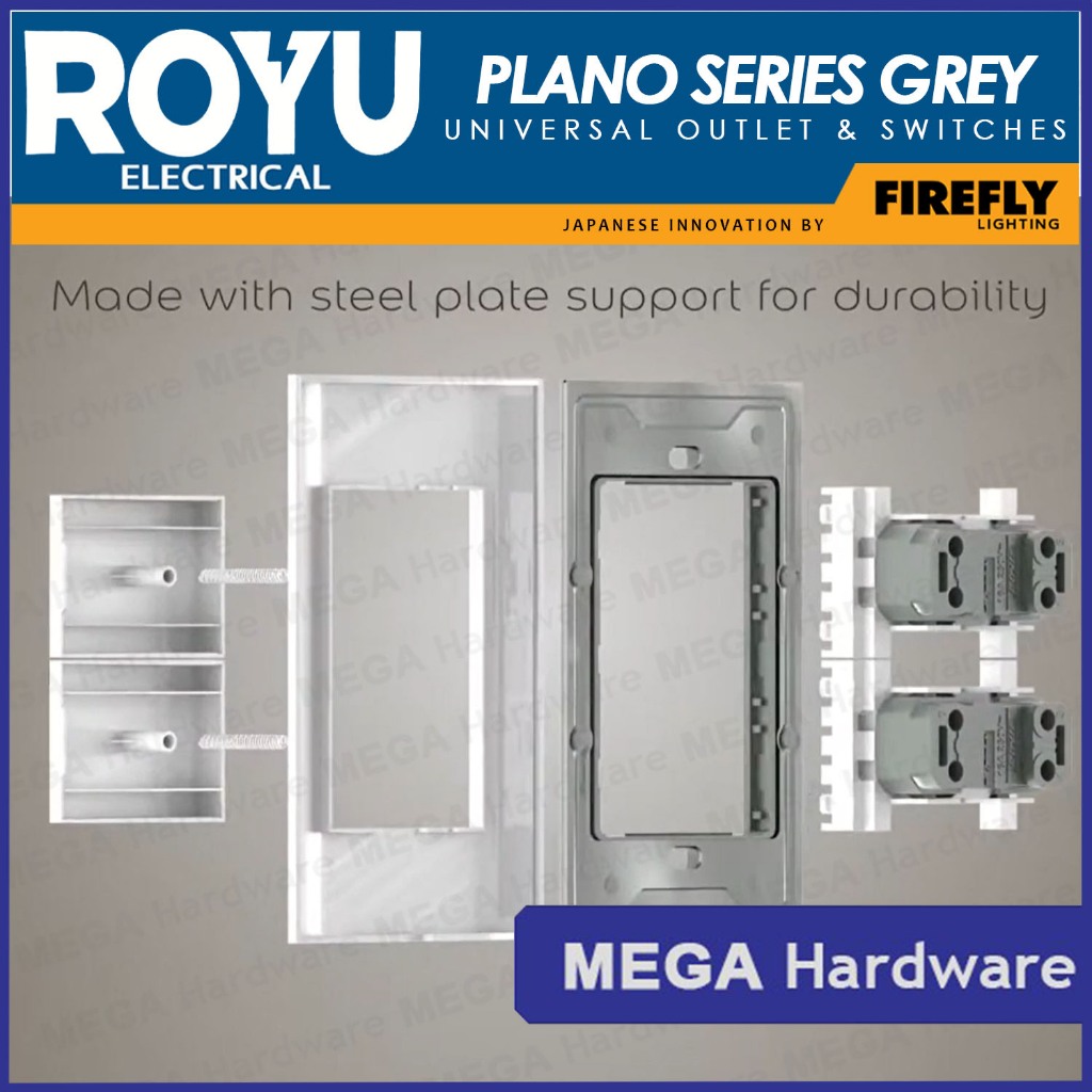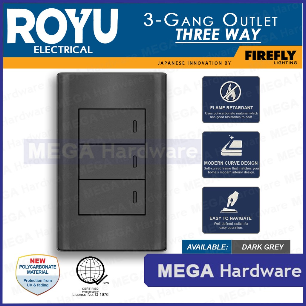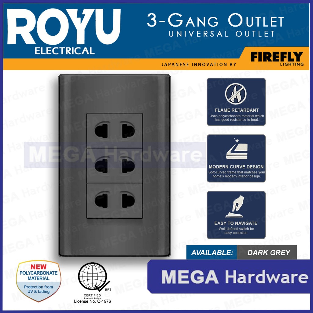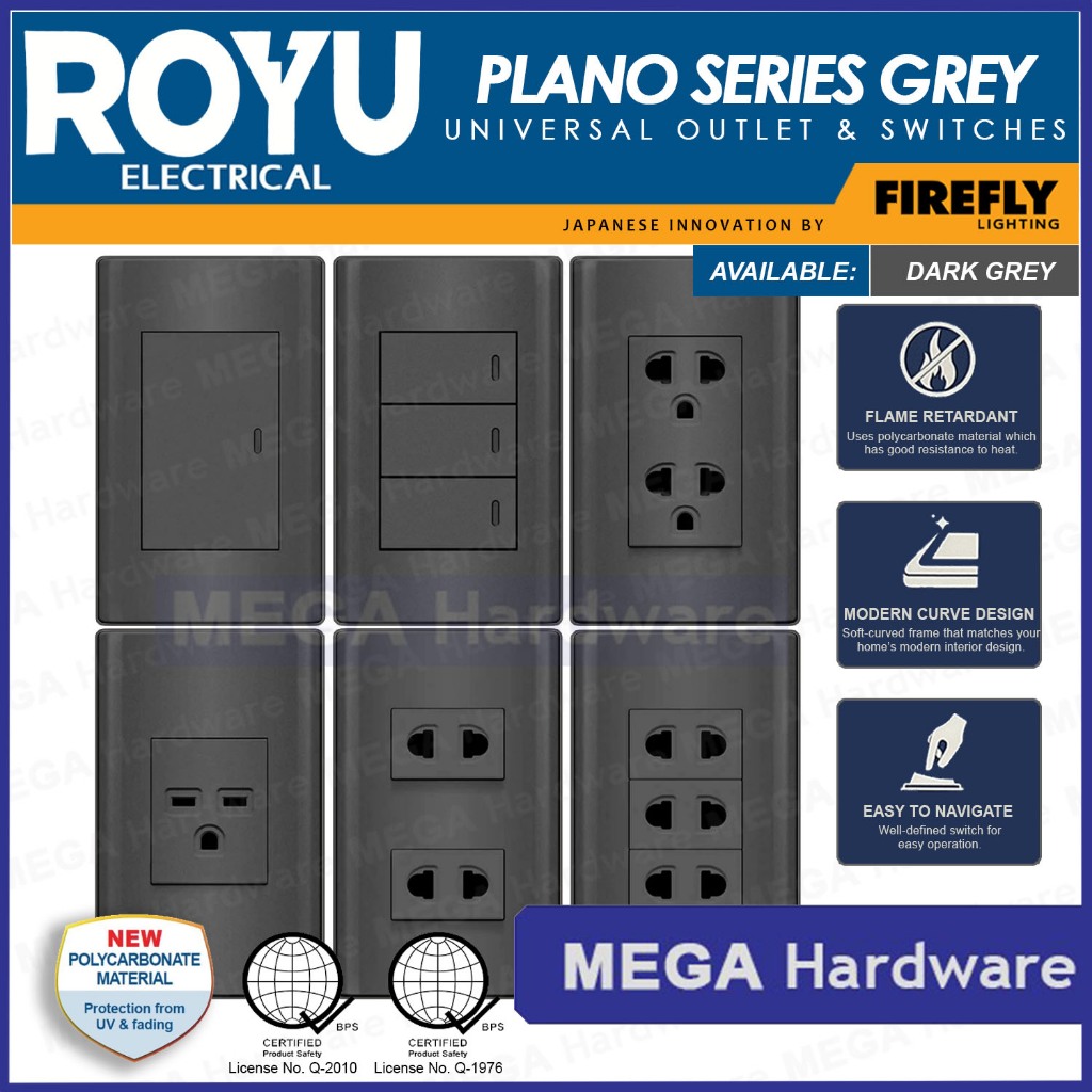 ROYU Plano Series Dark Grey Universal Outlet & Switch (1Gang, 2Gang, 3Gang)