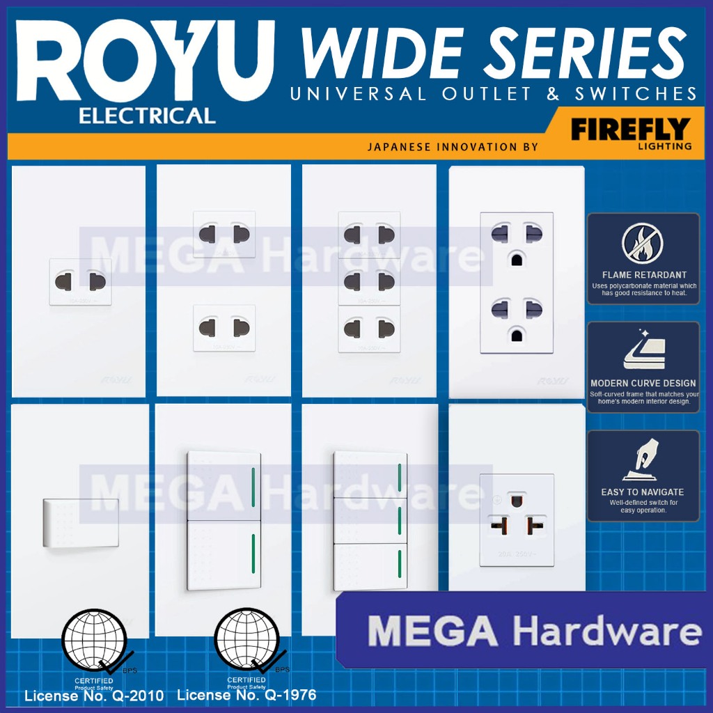 ROYU Wide Series Universal Outlet & Switch (1 Gang, 2 Gang, 3 Gang)