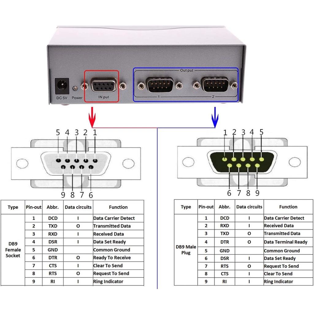 RS232 Serial Port Dispenser 1 Point 2 COM DB9 Pin 232 One In Two Out DT-5047