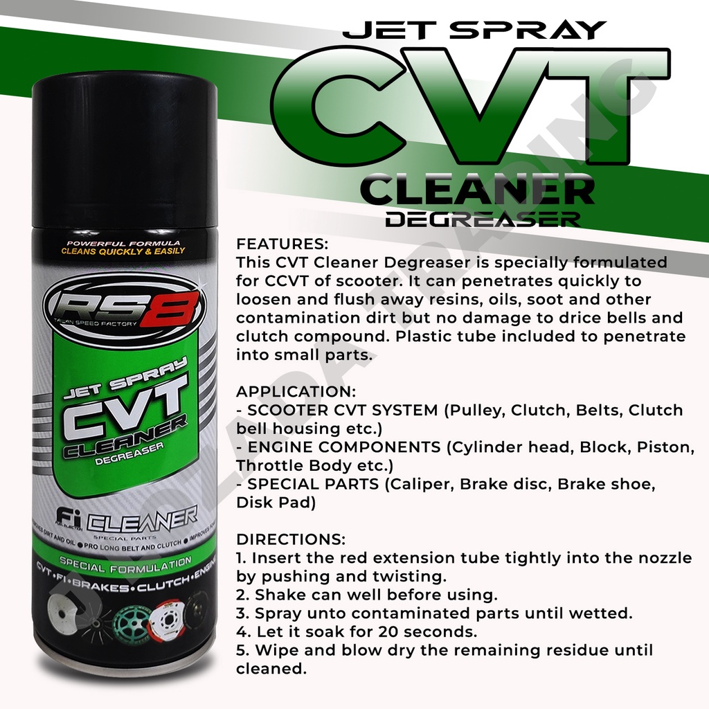 RS8 Jet Spray CVT Cleaner Degreaser - Motor Parts Cleaner / Engine Components Cleaner / Engine Clean
