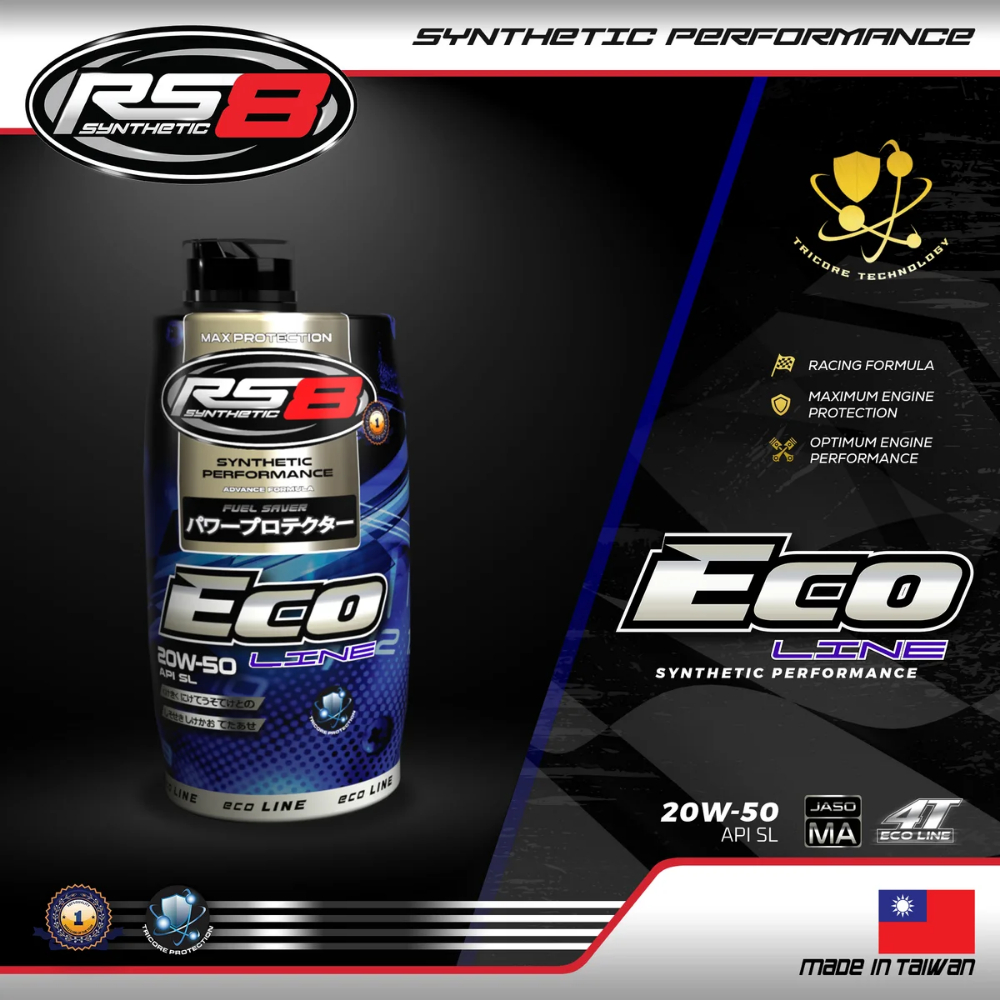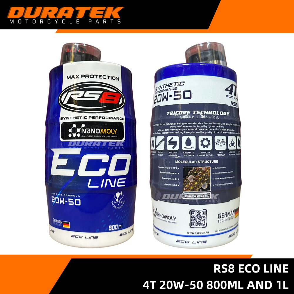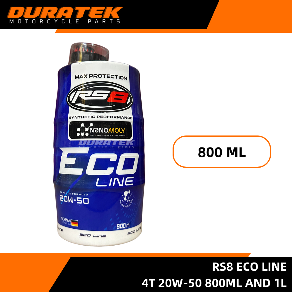 RS8 Eco Line 4T 20W-50 Motorcycle Engine Oil 800ml and 1L