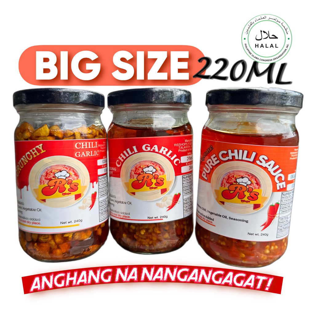 RSSHOPS Chili Garlic Oil Sauce or Crispy Crunch or Pure Chili or Pure Chili Oil 120/220ml Bottle
