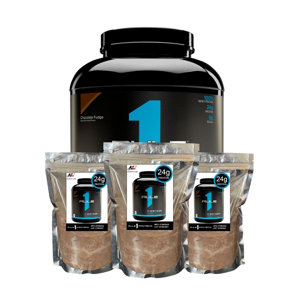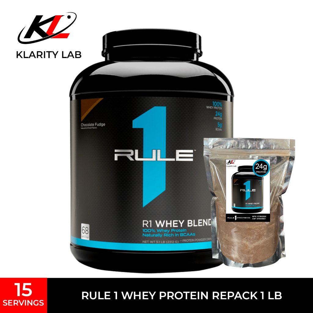 RULE 1 Whey Protein 1 lb Repack FREE Scoop Chocolate Fudge