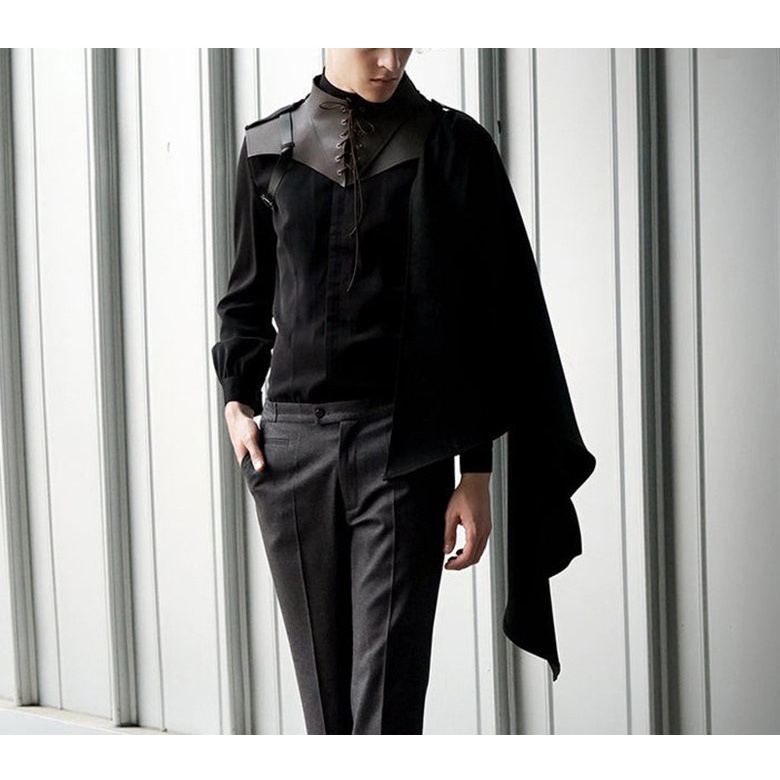 RUN Medieval Armor Black Cloak Single Shoulder Retro Cape Gothic Punk Renaissance