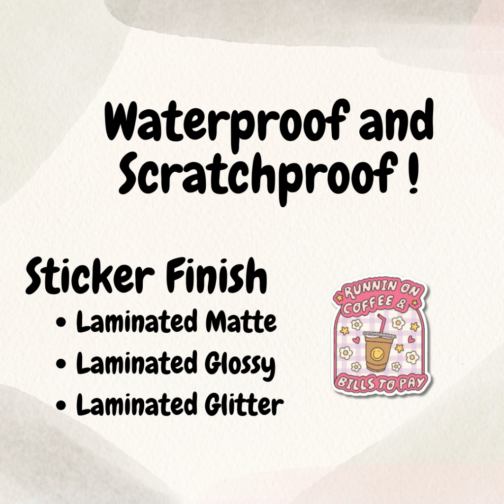 RUNNIN ON COFFEE AND BILLS TO PAY STICKER | Trendy Artsy Mental Health Laminated Waterproof Sticker