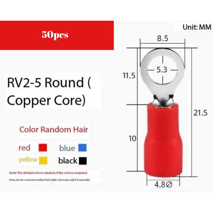 RV1, RV2, RV3 Ring insulated terminal Cable Wire Connector Crimp