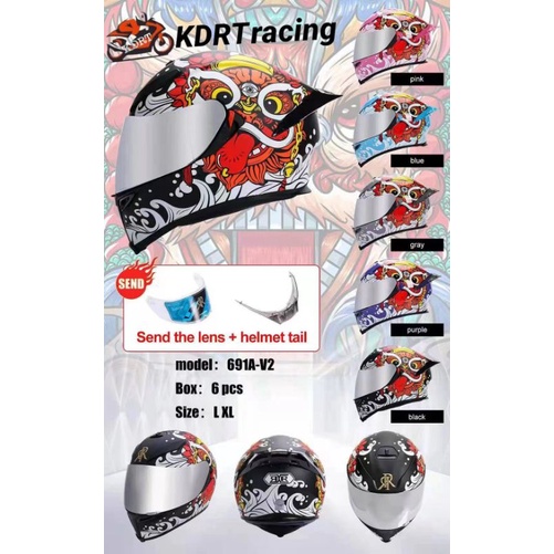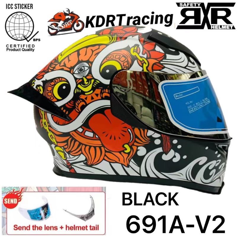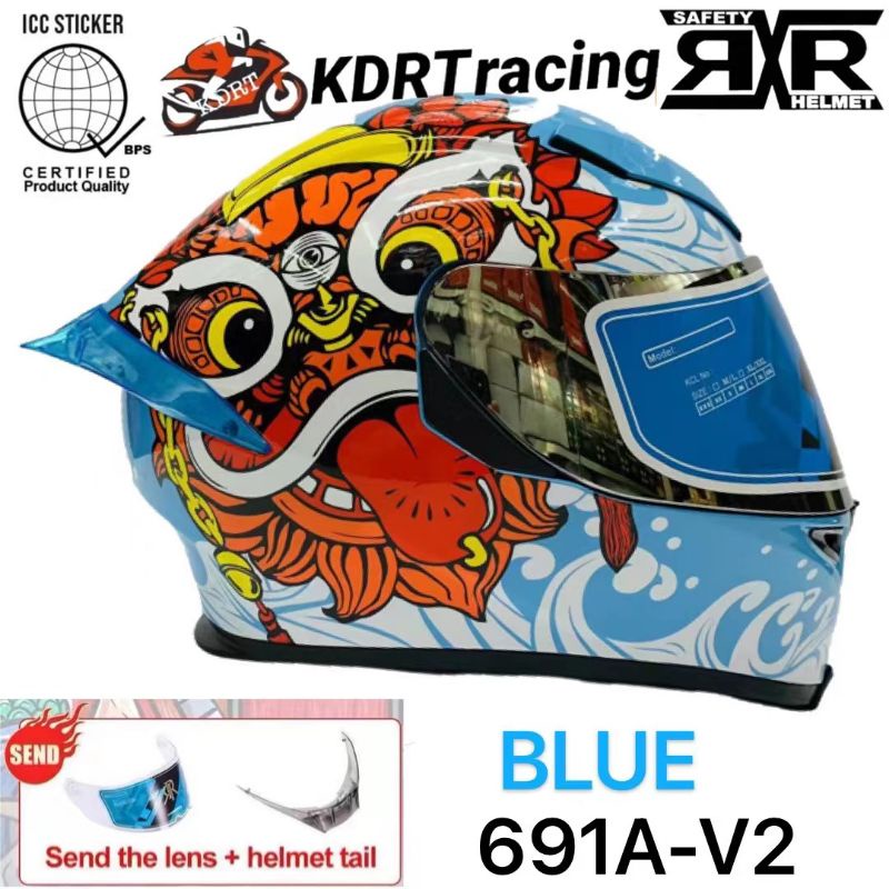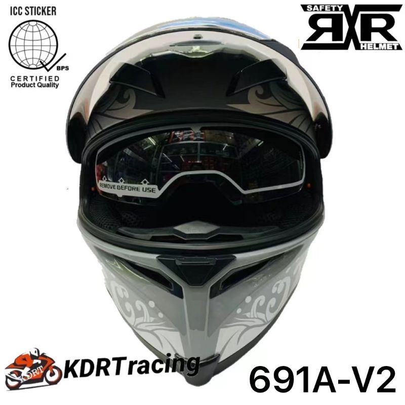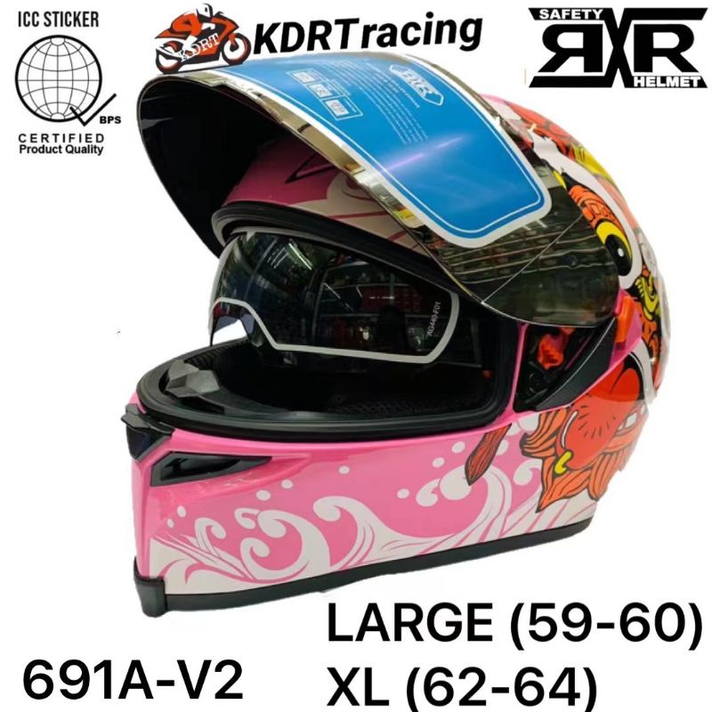 RXR 691A-V2 DUAL VISOR FREE LENS AND HELMET TAIL SIZES L(59-60cm) &XL (62-64cm) ICC and BPS Sticker