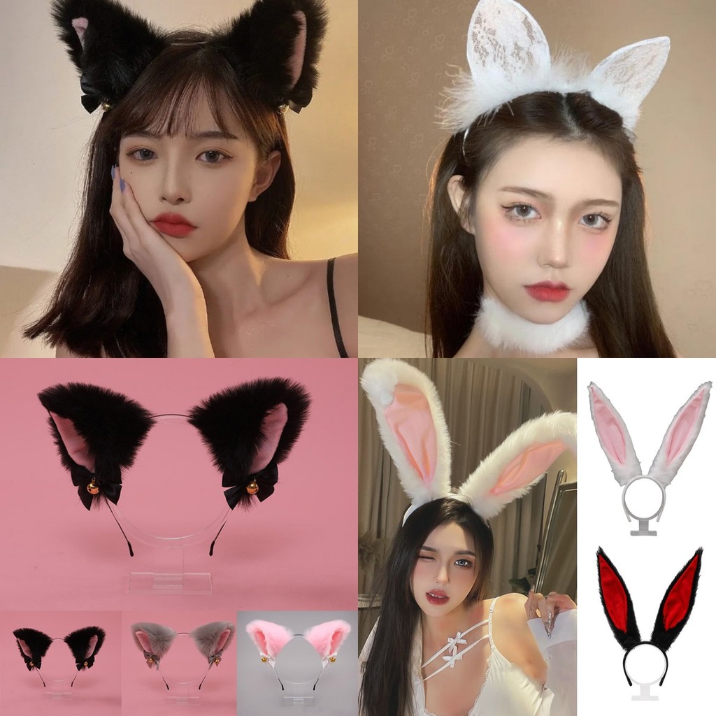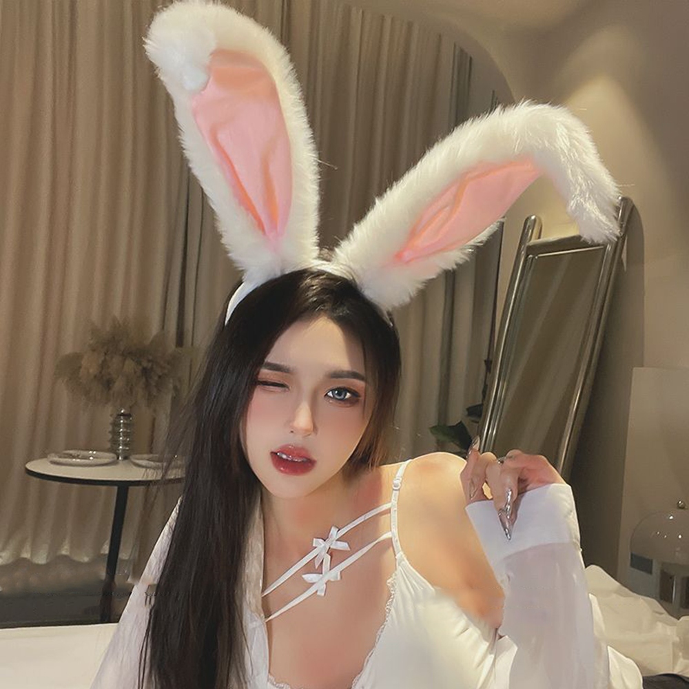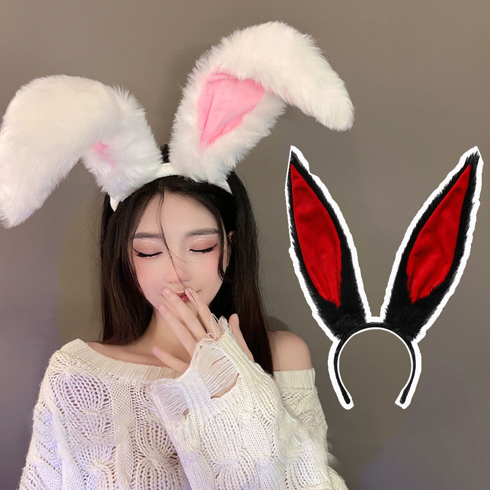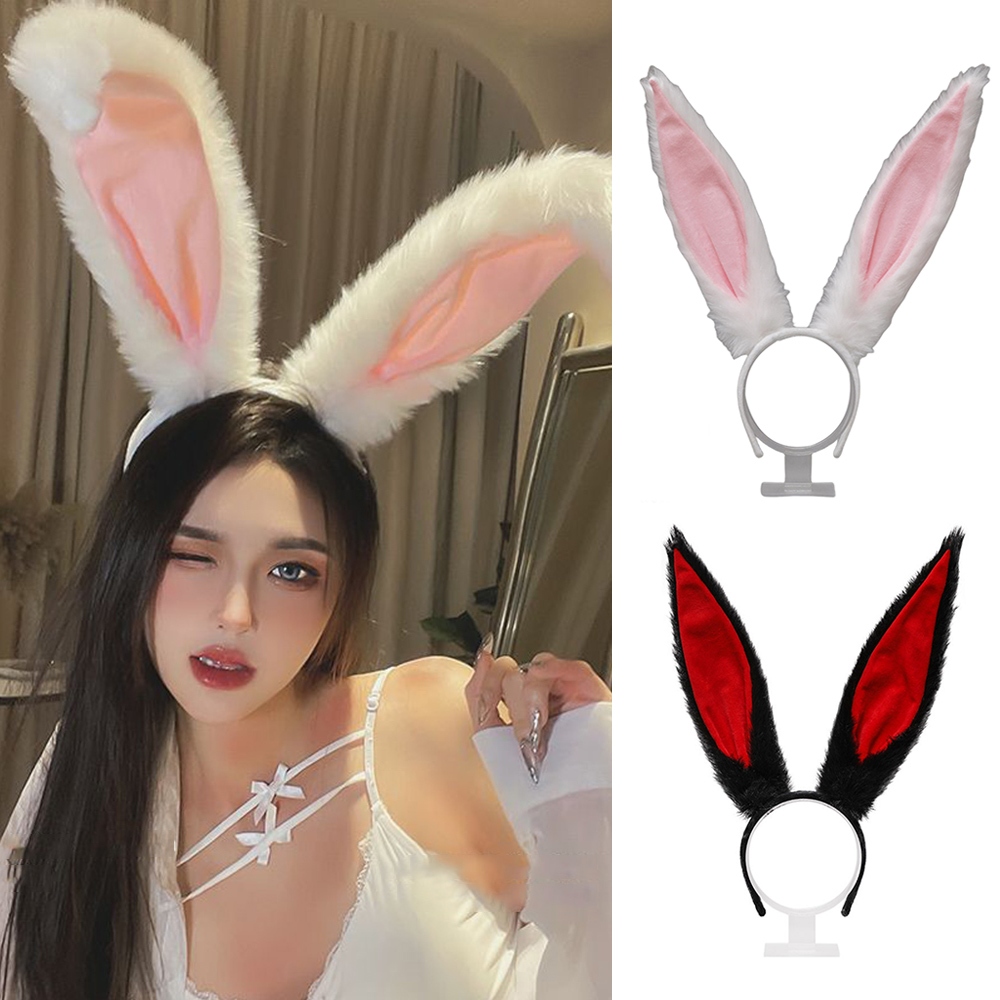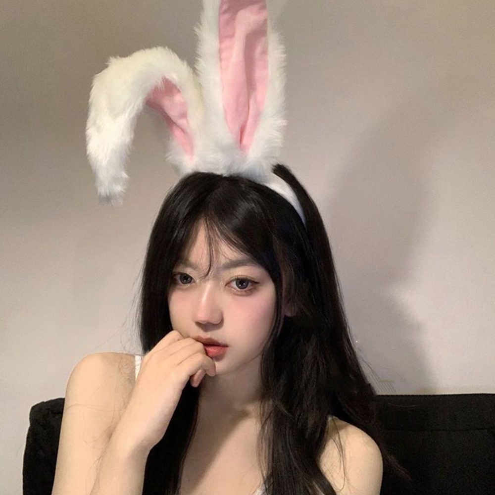 Rabbit Earlobe Ear Type Headpiece Plush Long Ears Hair Hoop Cartoon Headband Party Costume Accessories Anime Lolita Cosplay Props Head Foldable Bunny