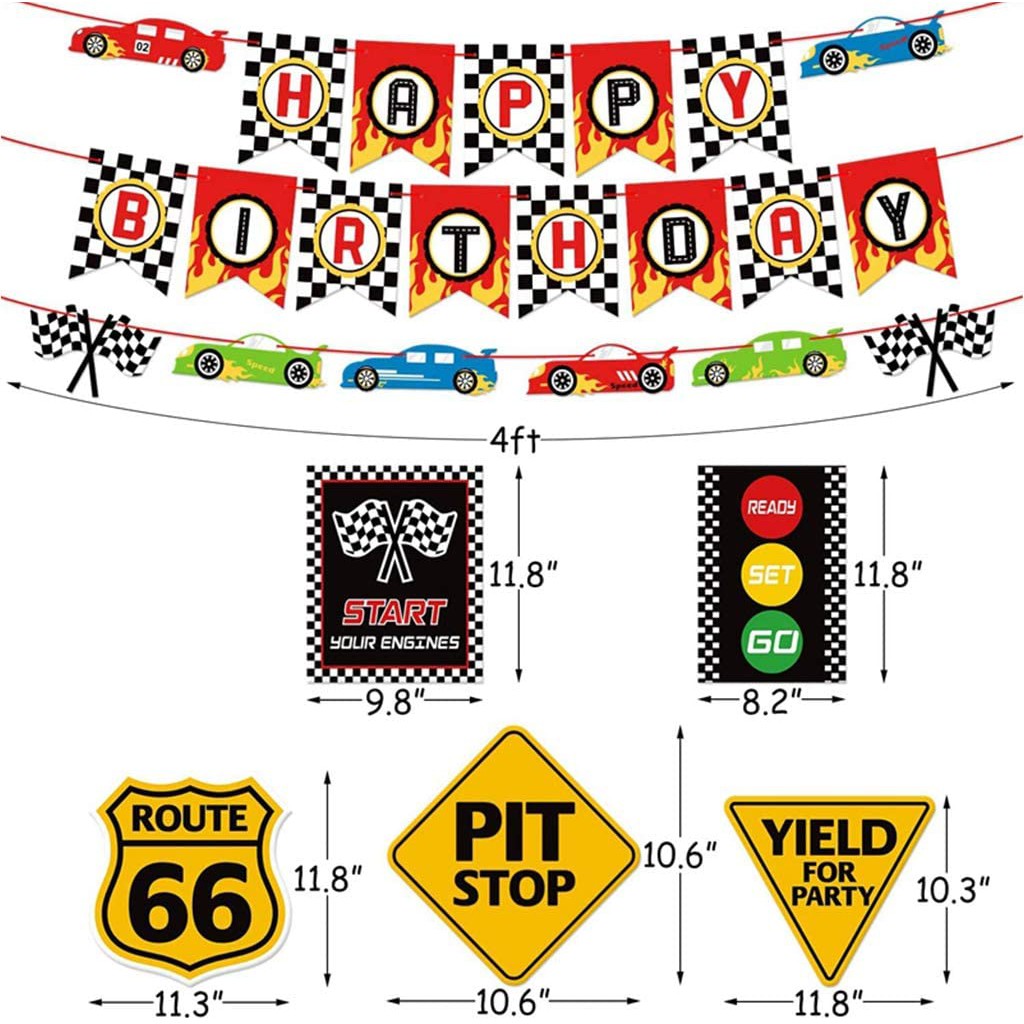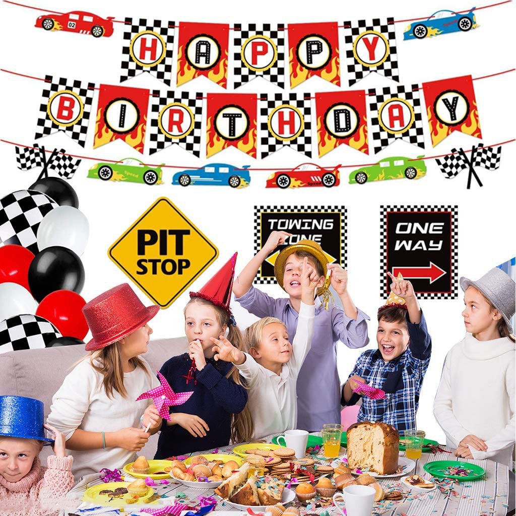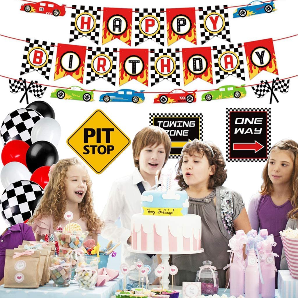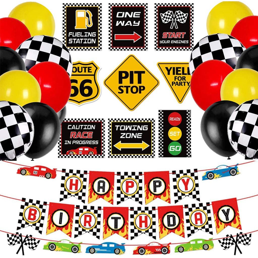 Race Car Birthday Party Decorations Checkered Racing Car theme Balloon Happy Birthday Banner for Race Themed Party