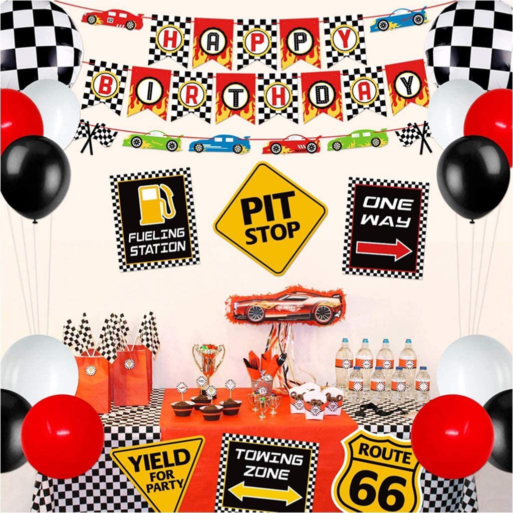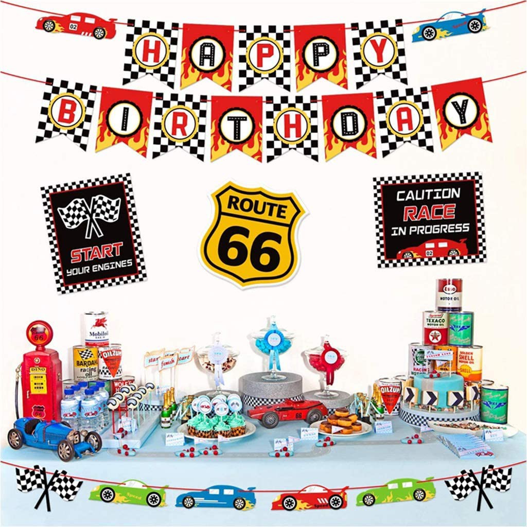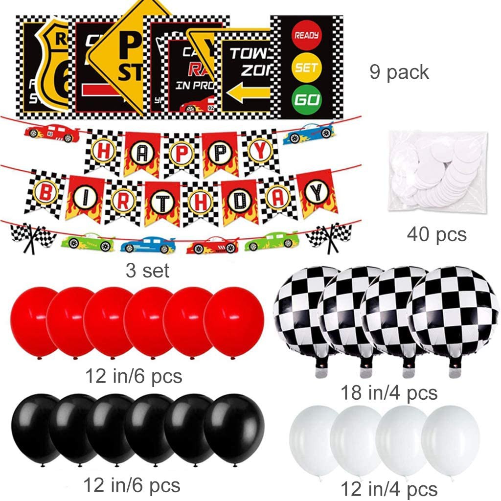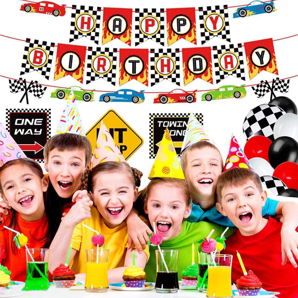 Race Car Birthday Party Decorations Checkered Racing Car theme Balloon Happy Birthday Banner for Race Themed Party