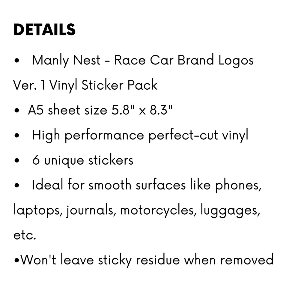 Race Car Brand Logos Ver. 1 Vinyl Sticker Pack (Stickers for Phones, Laptops, Motorcycles and more)