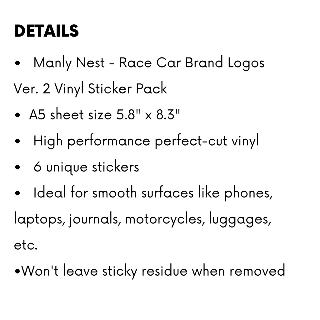 Race Car Brand Logos Ver. 2 Vinyl Sticker Pack (Stickers for Phones, Laptops, Motorcycles and more)