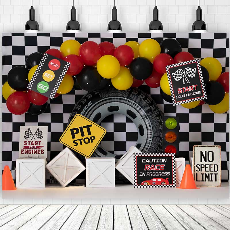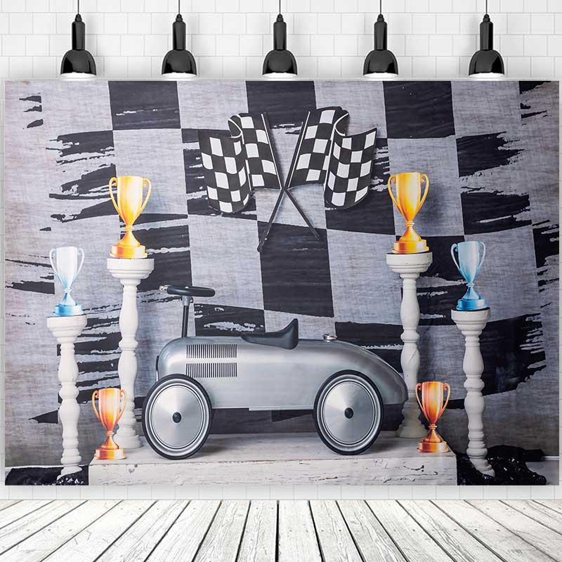 Race Cars Birthday Backdrop Photography Baby Shower Kids Children Route Car Cake Smash Background Party Decor as the pic Print