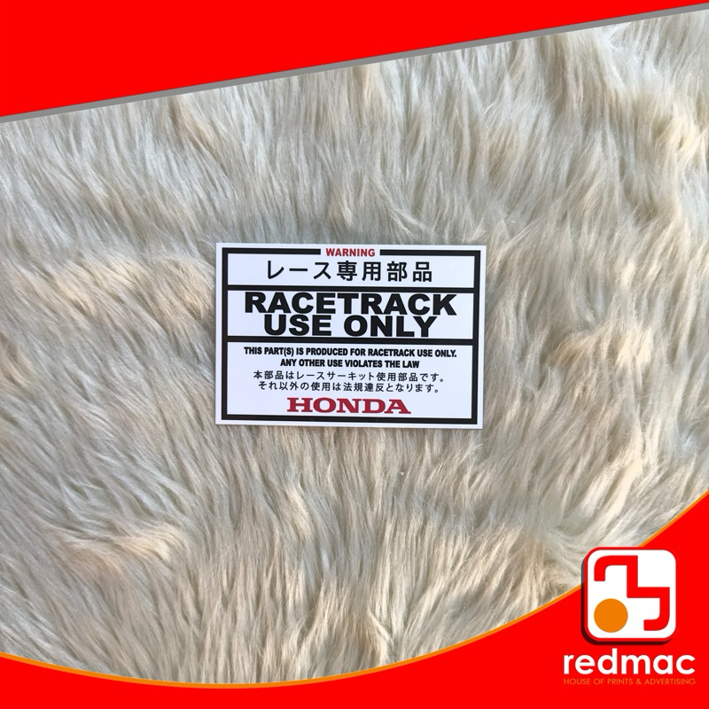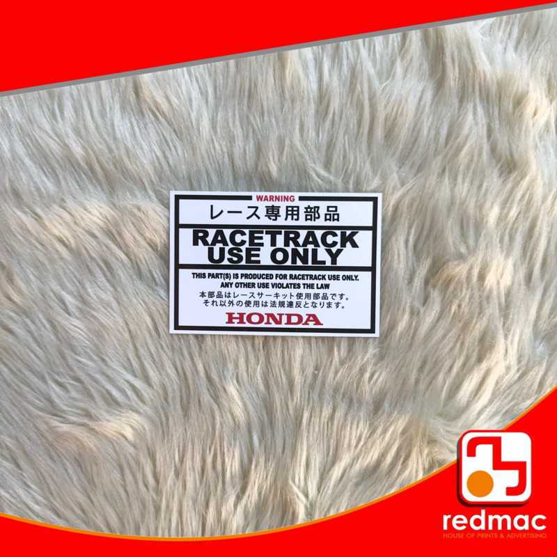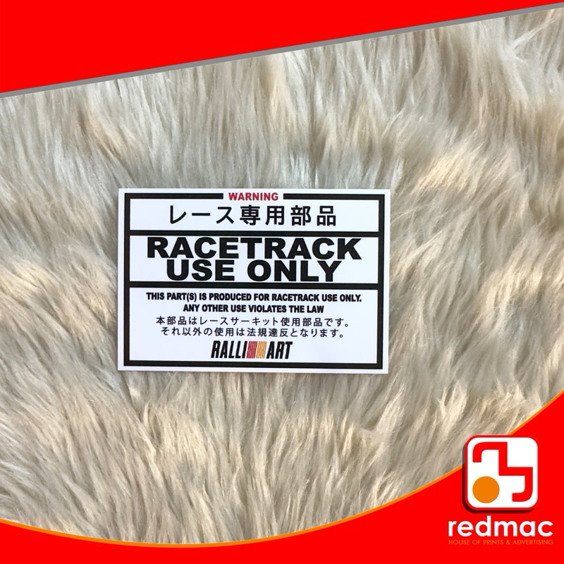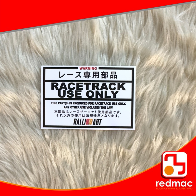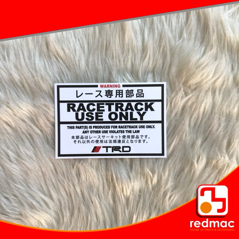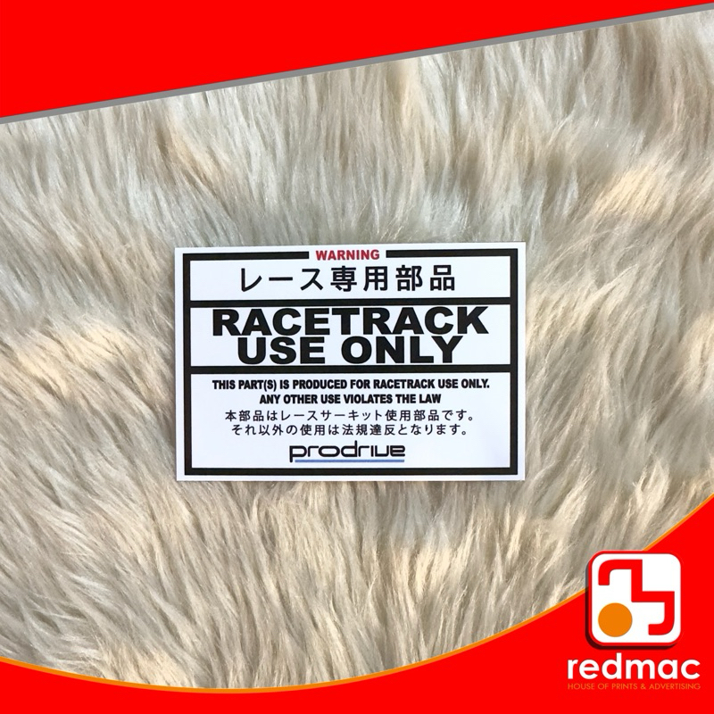 Race Track Use Only Vinyl Laminated Sticker