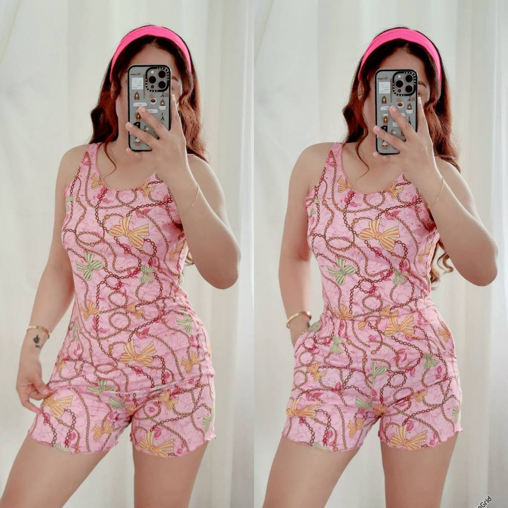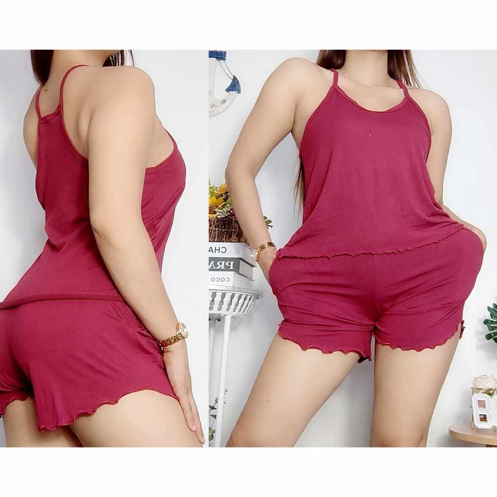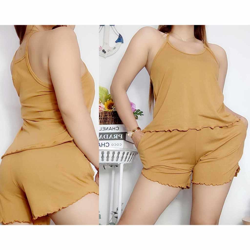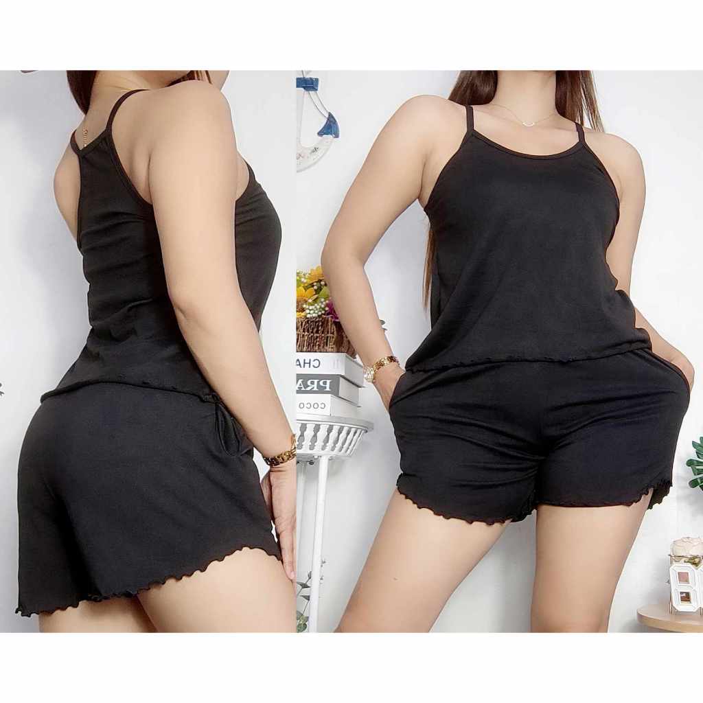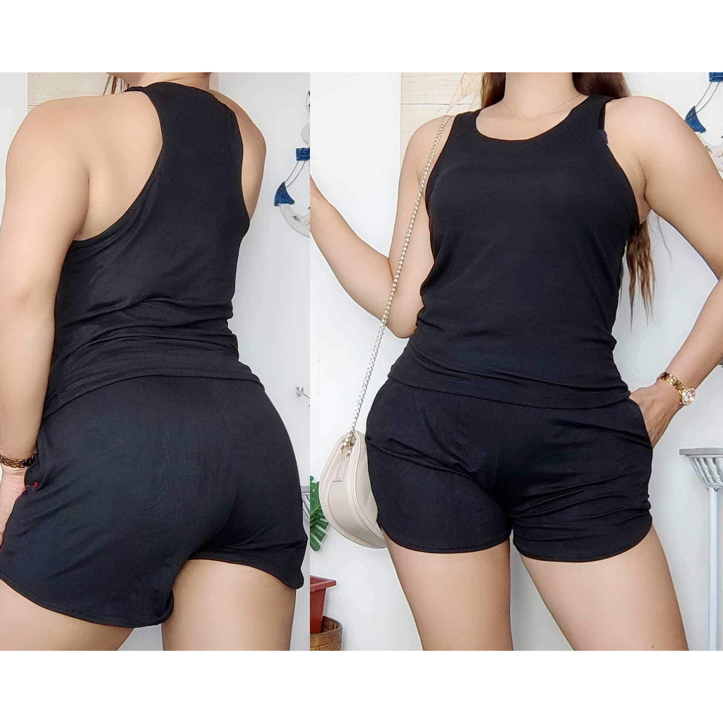 Racer Back Top & Short Terno Shorts Set - Plain, XL Fit with Pocket for Women