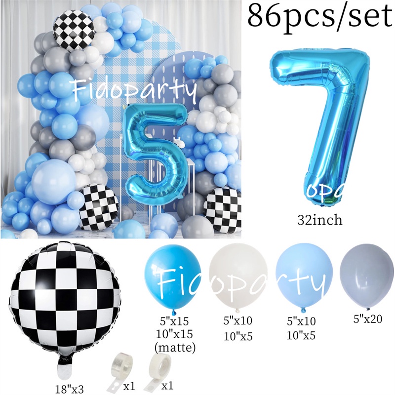 Racing Car Balloon Blue White Macaron Balloon 32Inch Blue Number Balloons Birthday Decoration Set Kids Toys Party Needs
