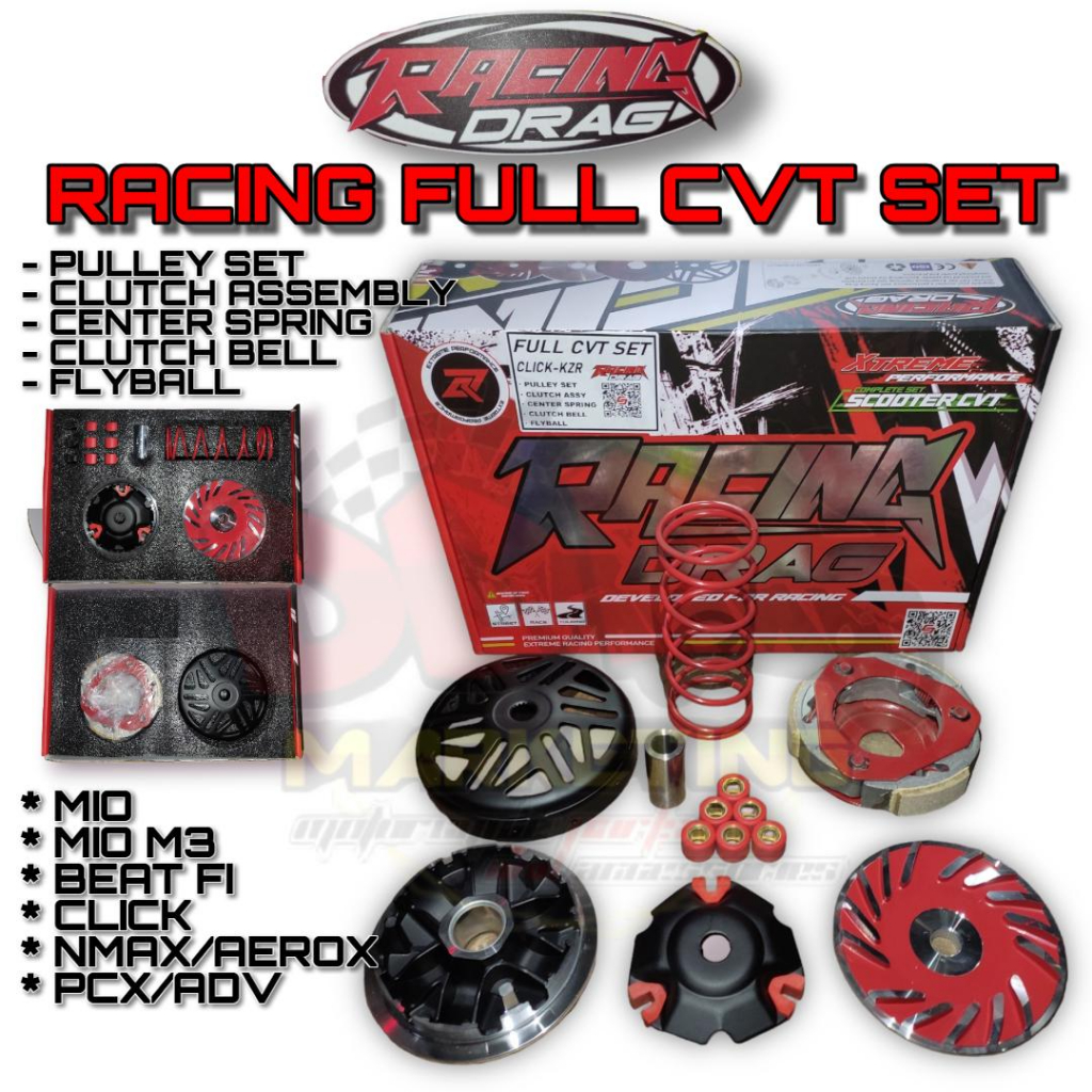 Racing Drag Full CVT Set for Mio Sporty/Click125/150/Mioi125/NMAXV1/V2/AeroxV1/V2/Beat Fi/PCX/ADV