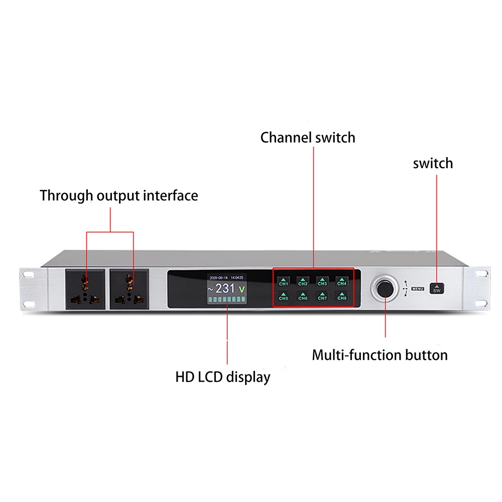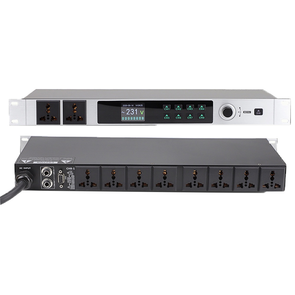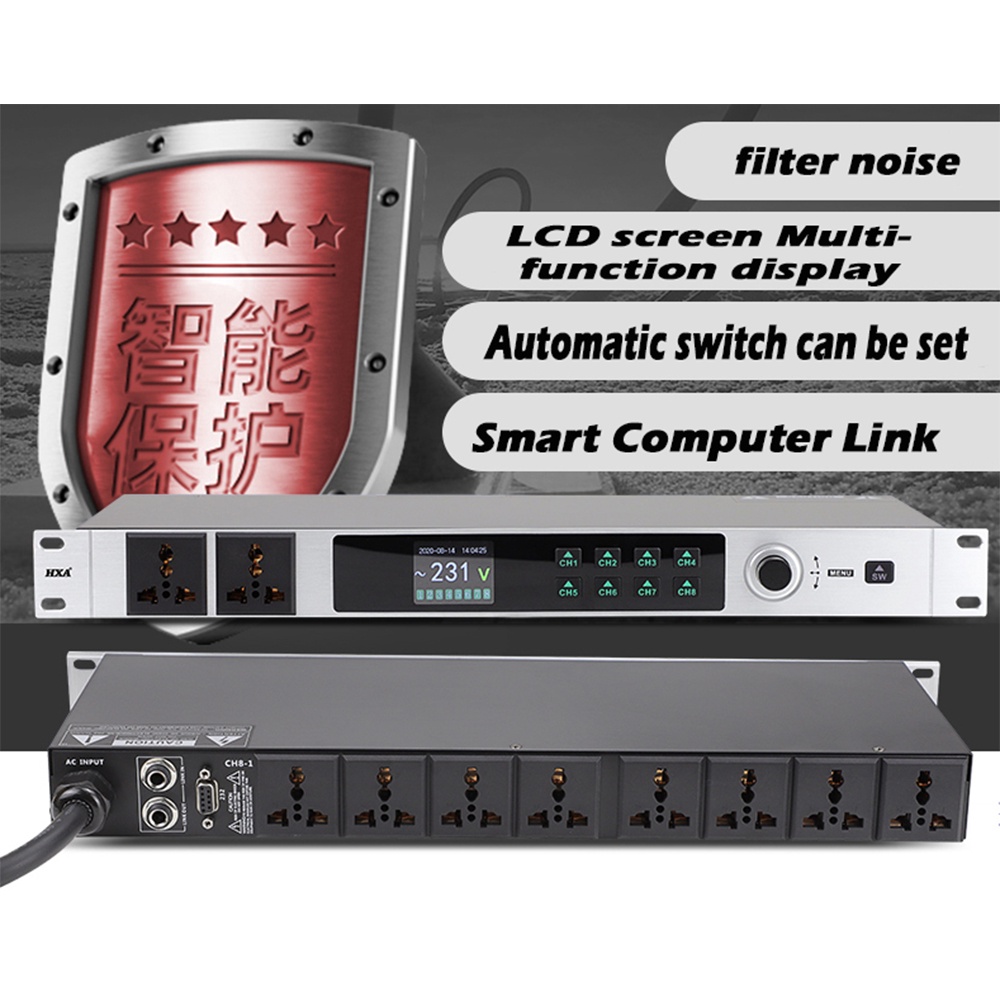 Rack Mount AC Power Regulator/Sequencer with Surge Protection, Voltage Display, Outlet Power, 1U Rack Mount Pro Audio Digital Power Controller with USB for Stage, Studio