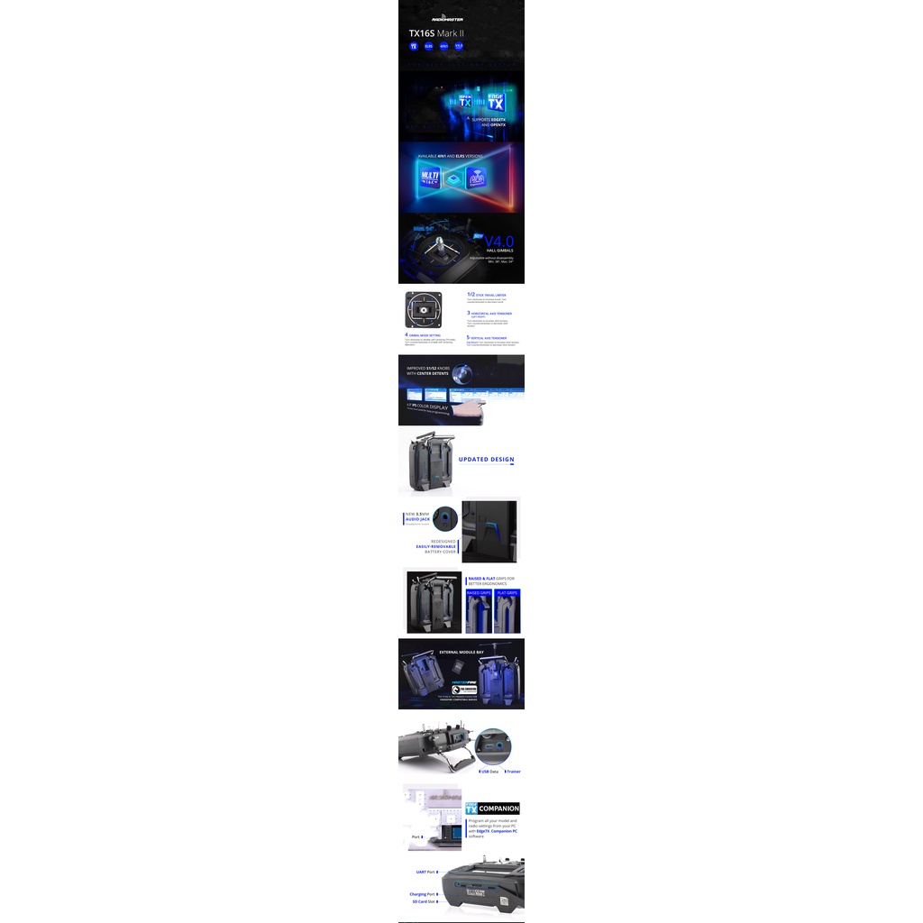 RadioMaster TX16S MKII V4.0 16CH 2.4G Hall Gimbals Transmitter Remote Control ELRS 4in1 Support EDGETX OPENTX for RC Drone