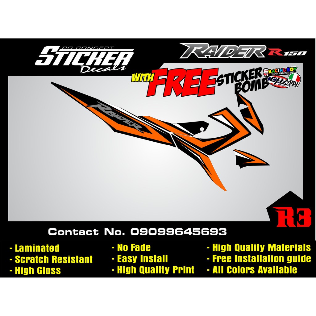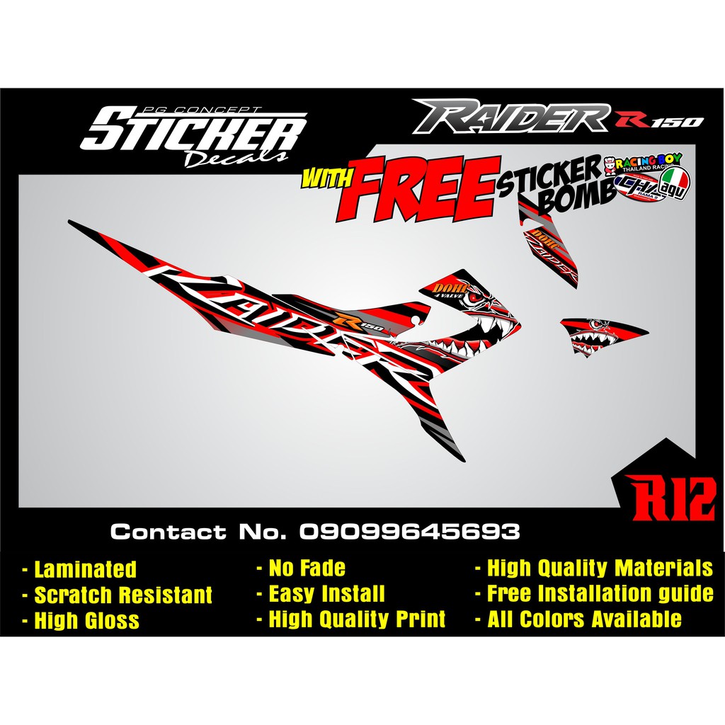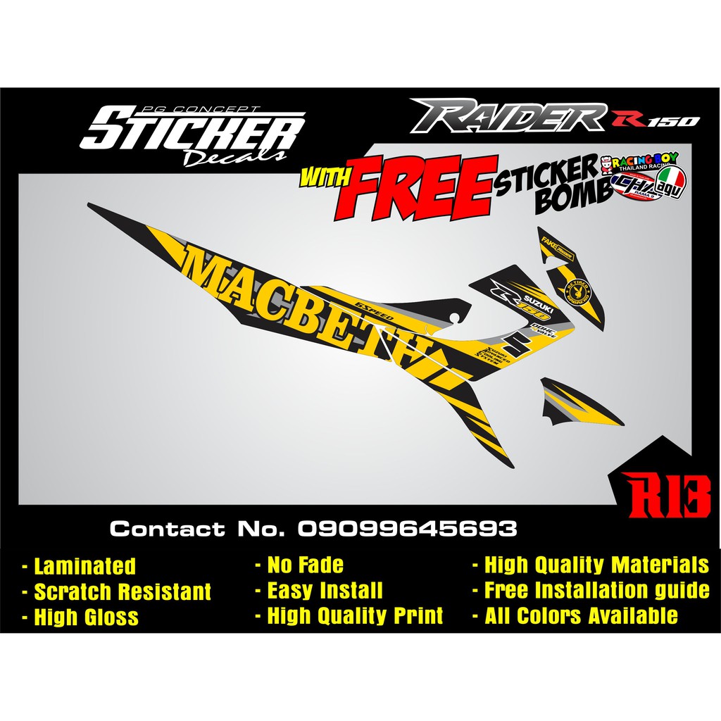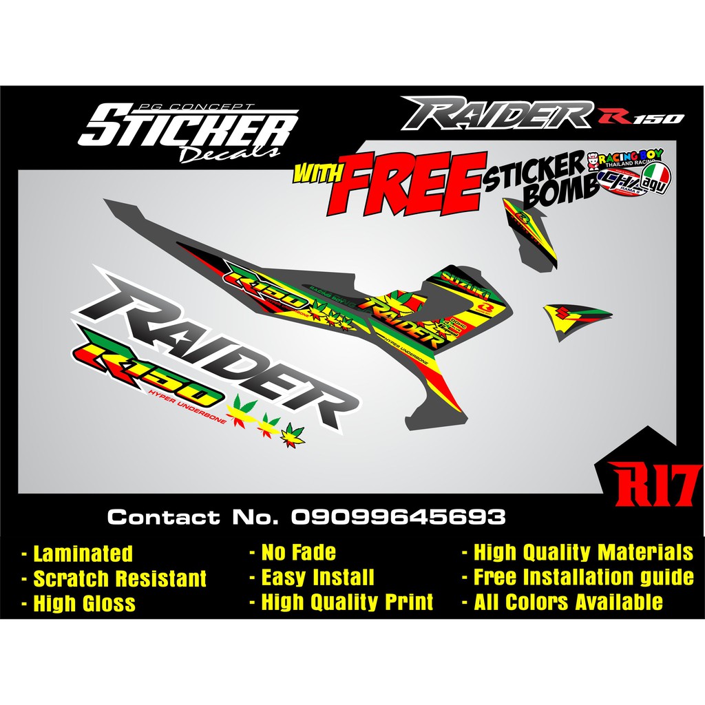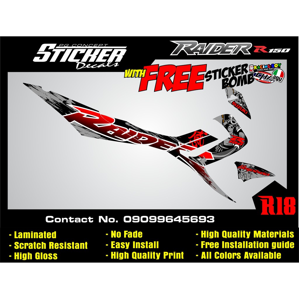 Raider r150 carb suzuki Reborn sticker decals Batch 2