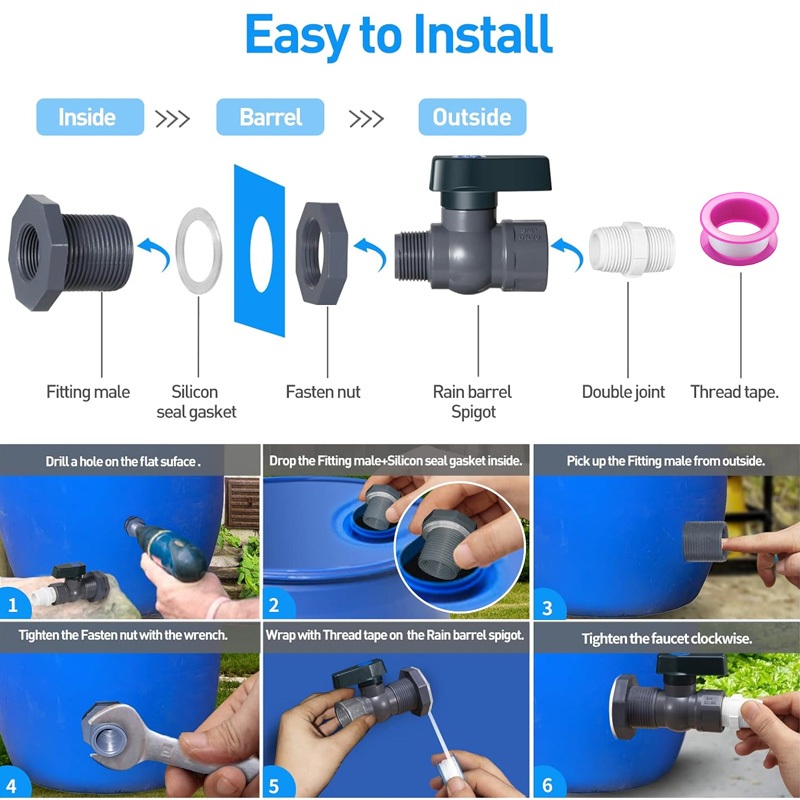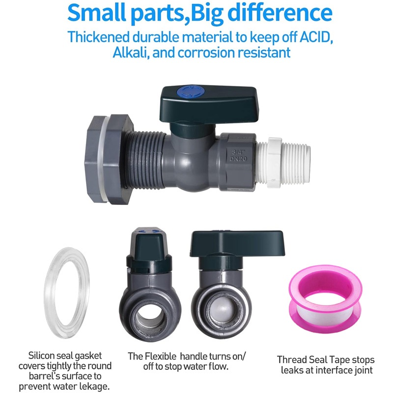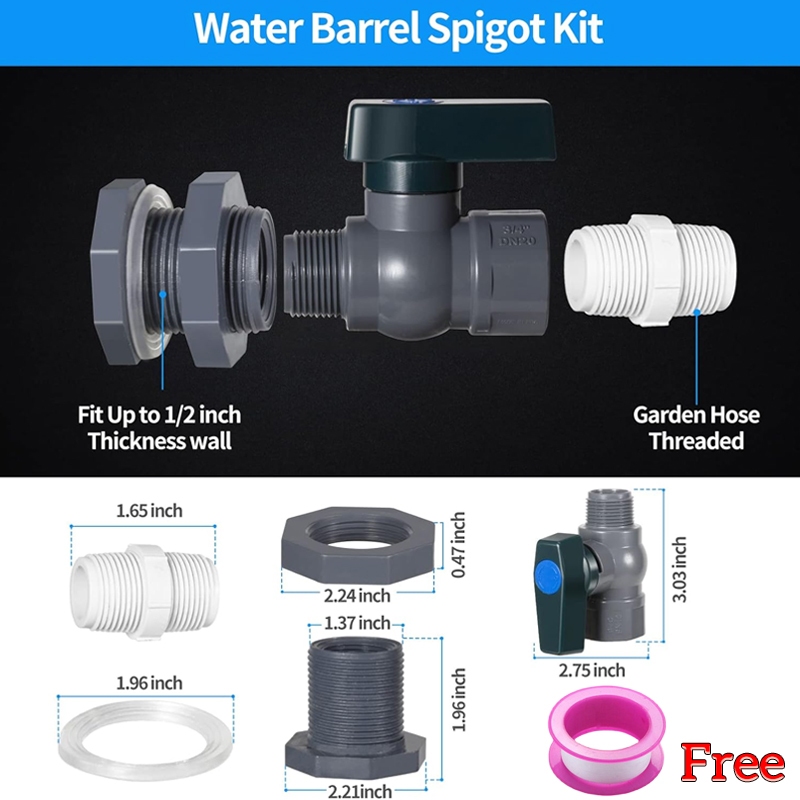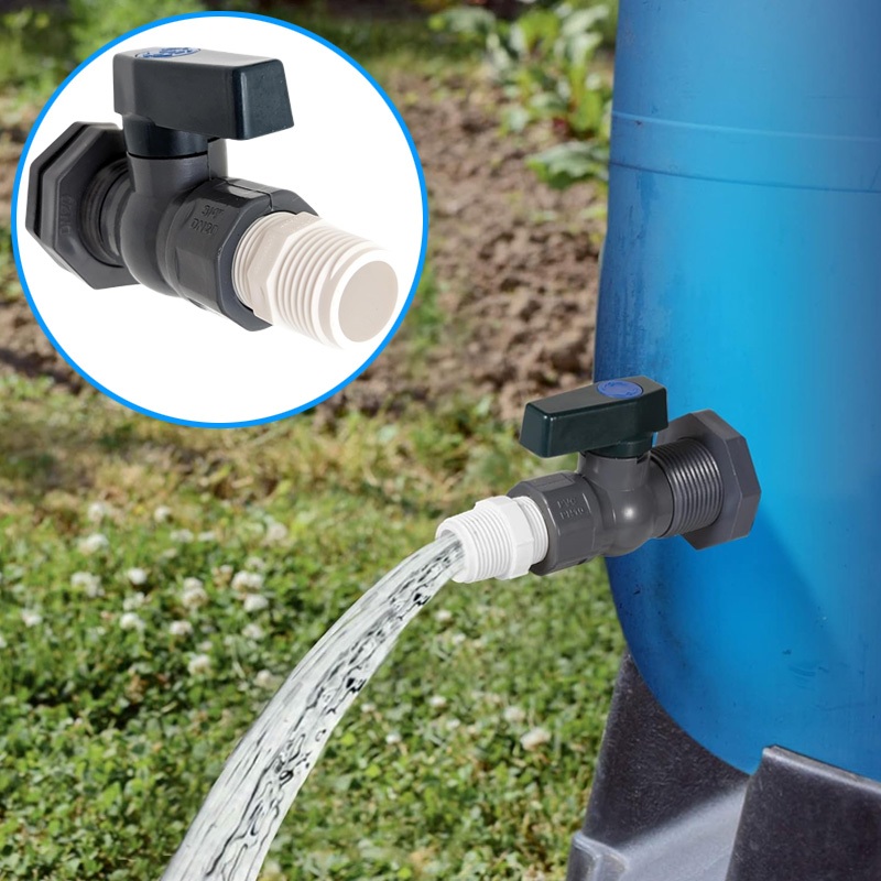 Rain Barrel Spigot Kit 3/4" PVC Full Port Ball Valve with Bulkhead Fitting and Hose Adapter