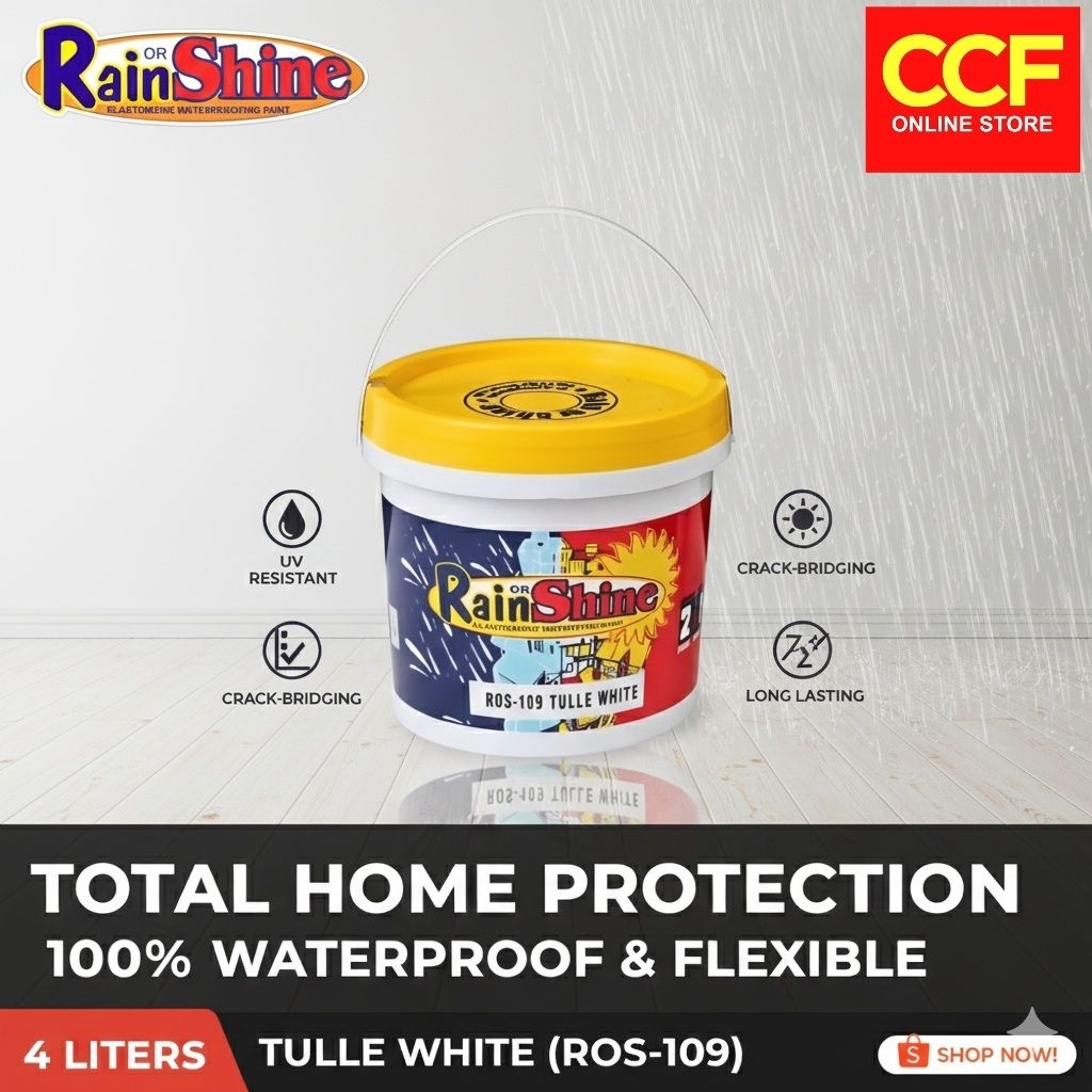 Rain or Shine Elastomeric House Latex Waterproofing Paint Tulle White 4 Liters / 1 Gallon