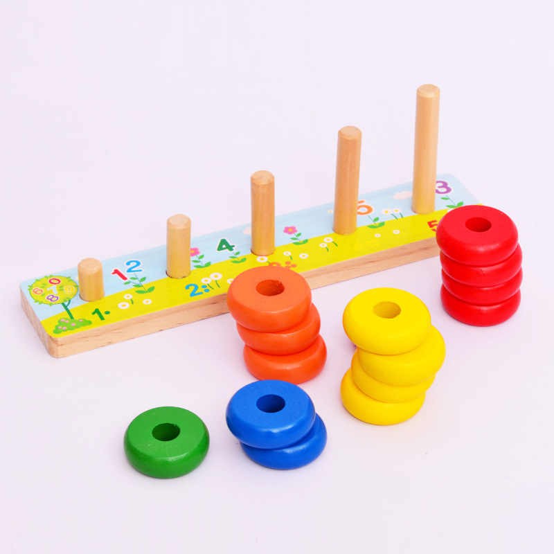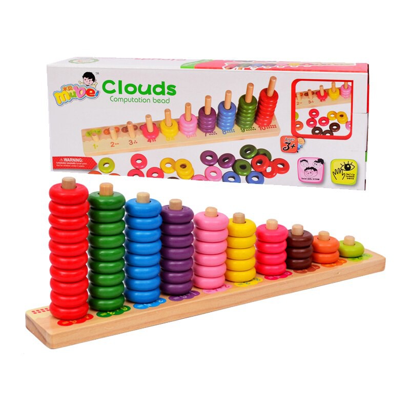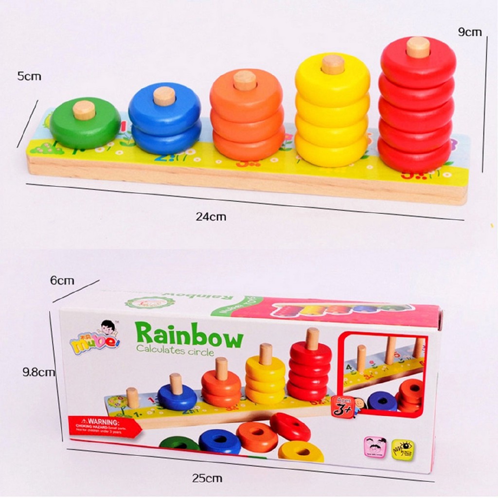 Rainbow Calculate Circle Math Counting Stacker Wooden Educational Toy for Baby Kids Chilrden