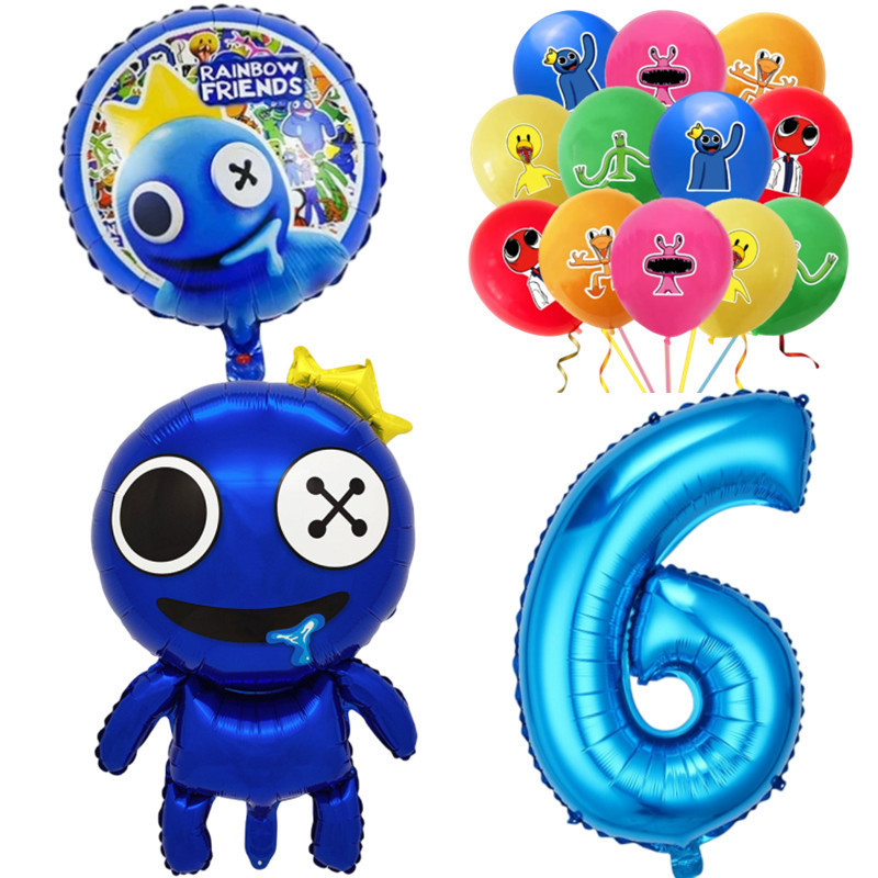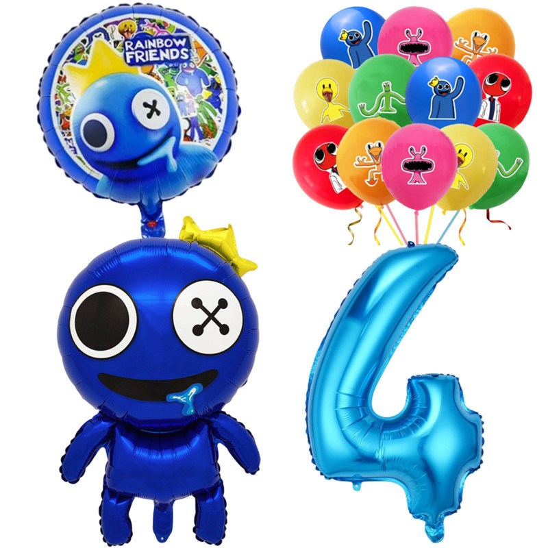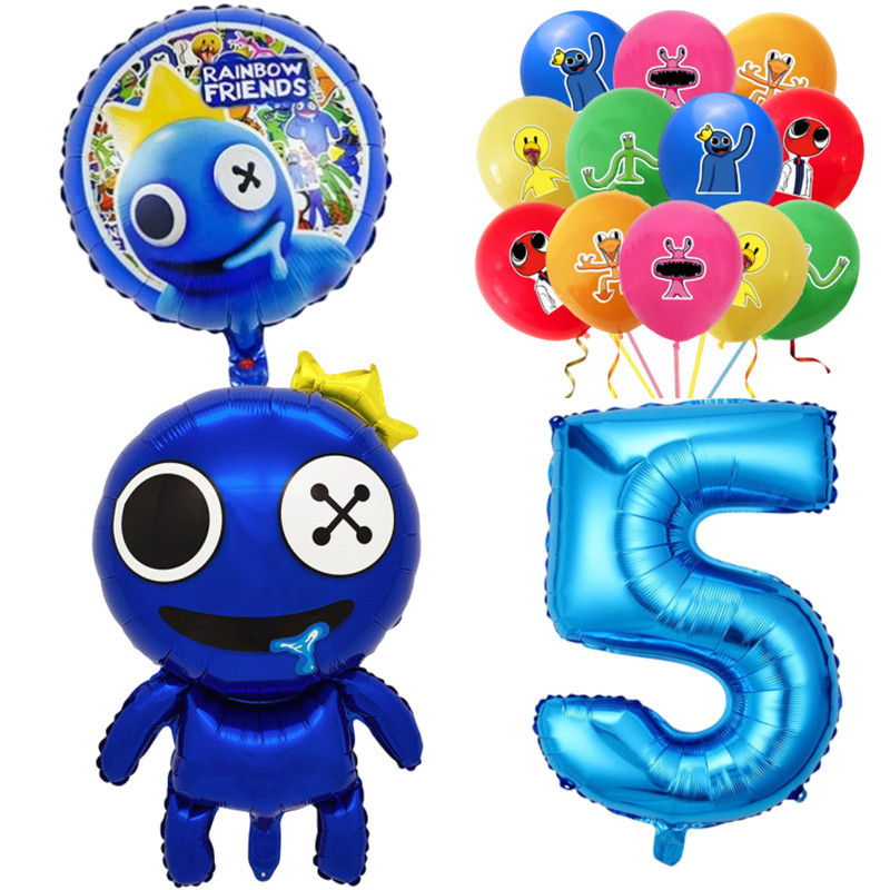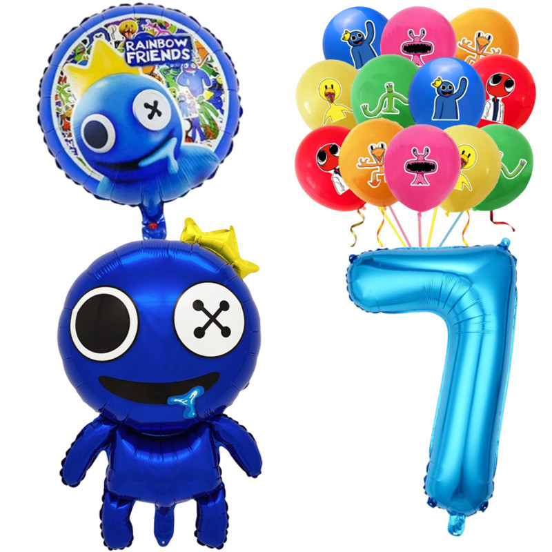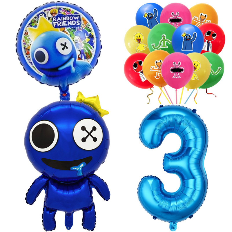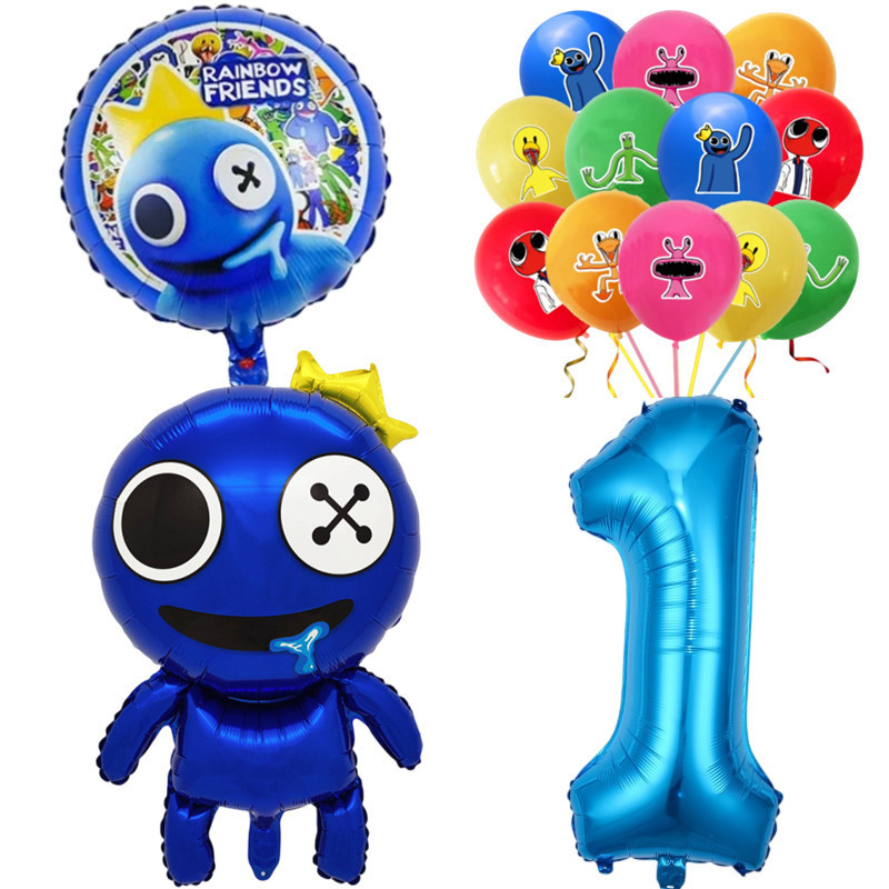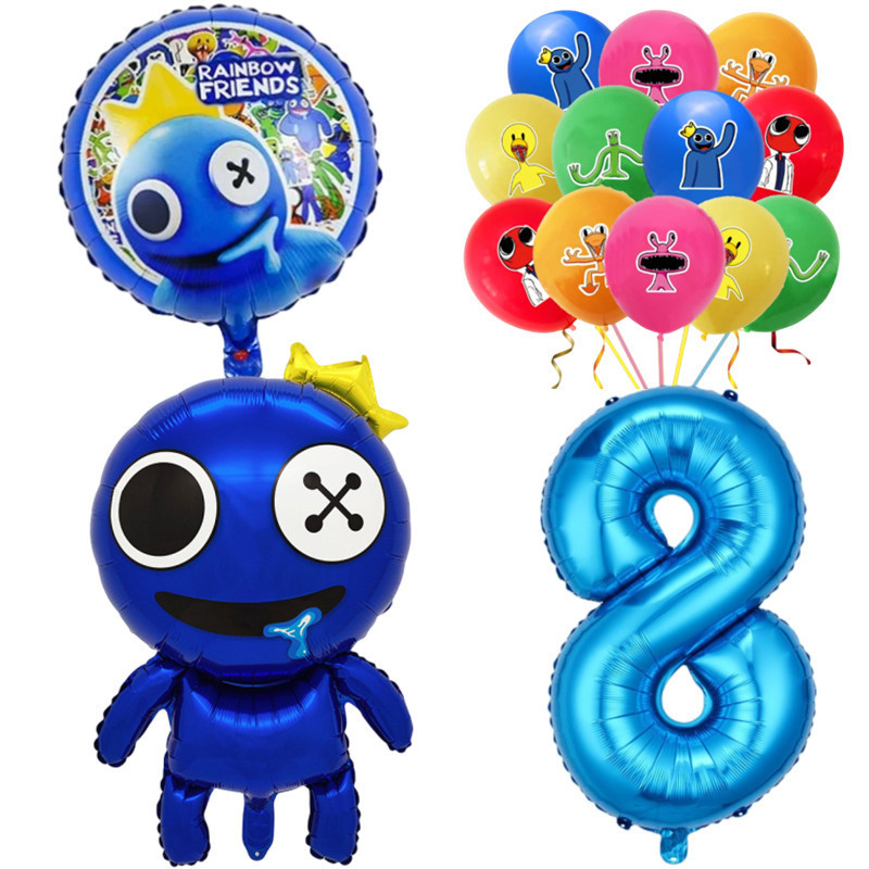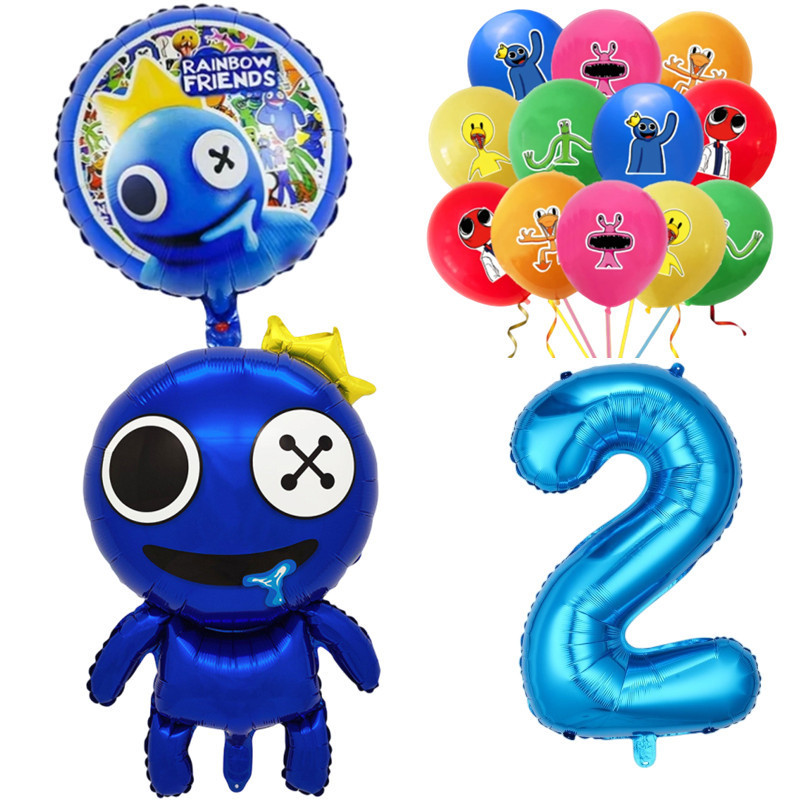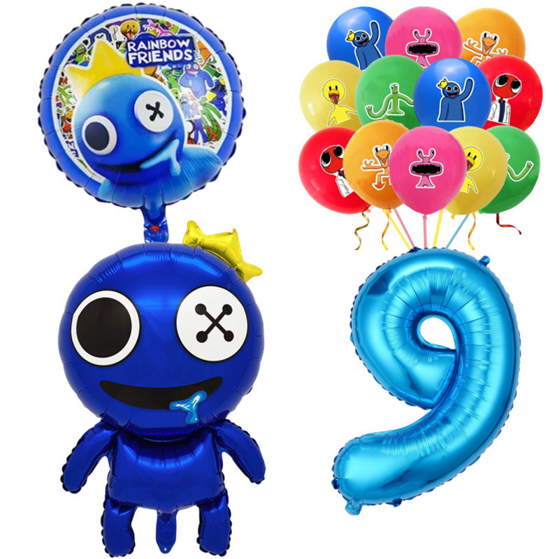 Rainbow Friends Birthday Theme 1-9 Year Old Balloons Set Blue Number Two-sided Roundball Foil Balloon Party Decorations