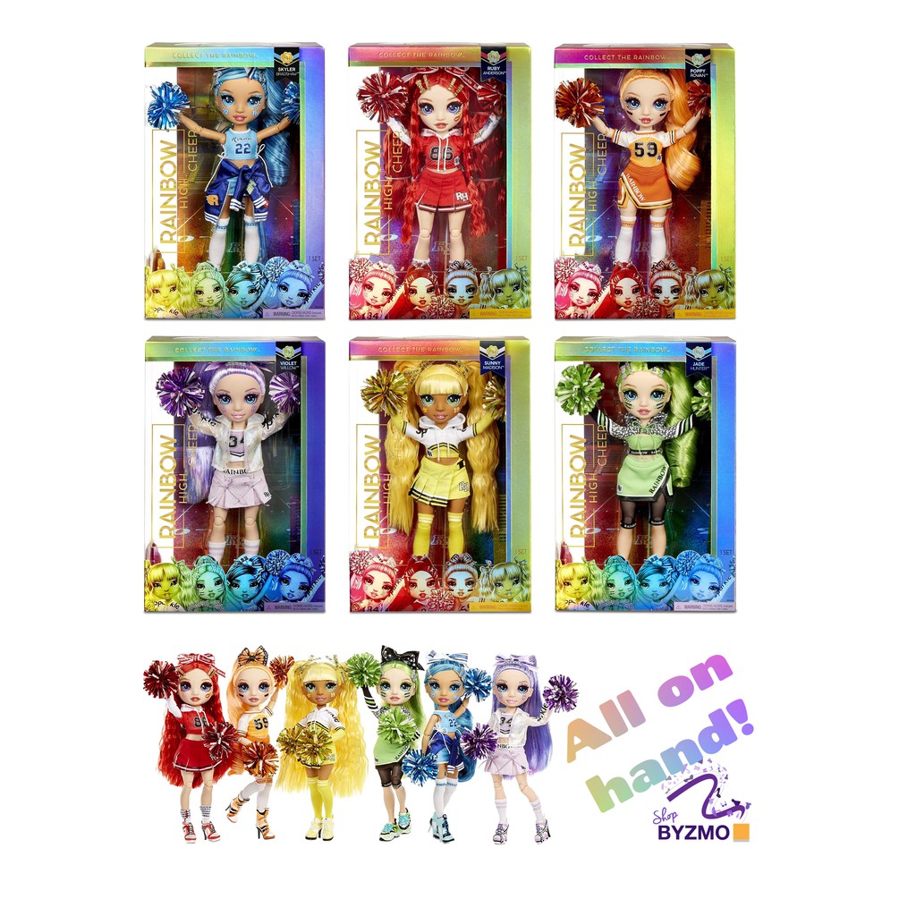 Rainbow High Cheer Dolls NRFB Skylar, Ruby, Violet, Sunny, Jade, Poppy