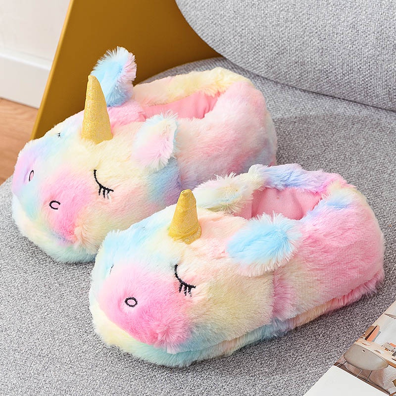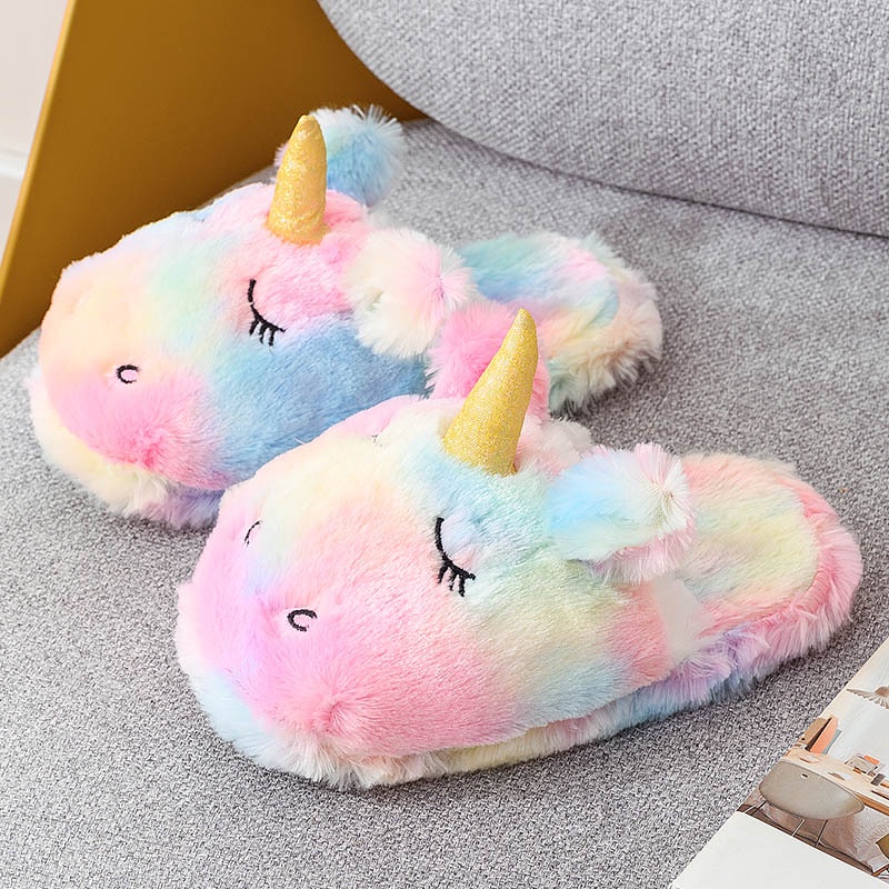 Rainbow Unicorn Slippers/Cute Fluffy Girls Slippers/Cozy Plush Indoor Outdoor Women Slippers/Best Unicorn Gifts