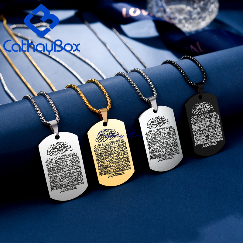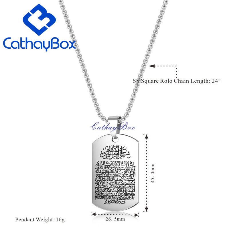 Ramadan Gift Stainless Steel Islam Koranic Surah Quran Ayatul Kursi Pendant Necklace For Muslim CB00A005