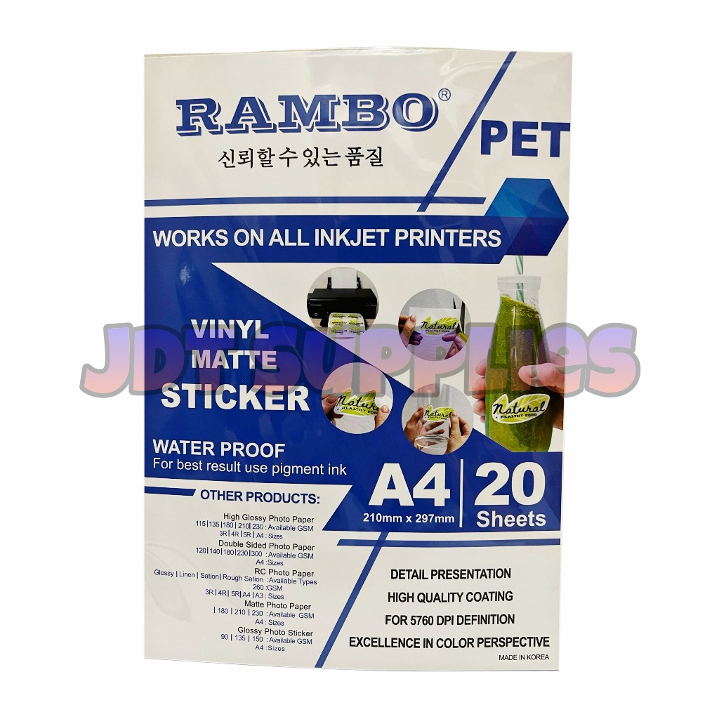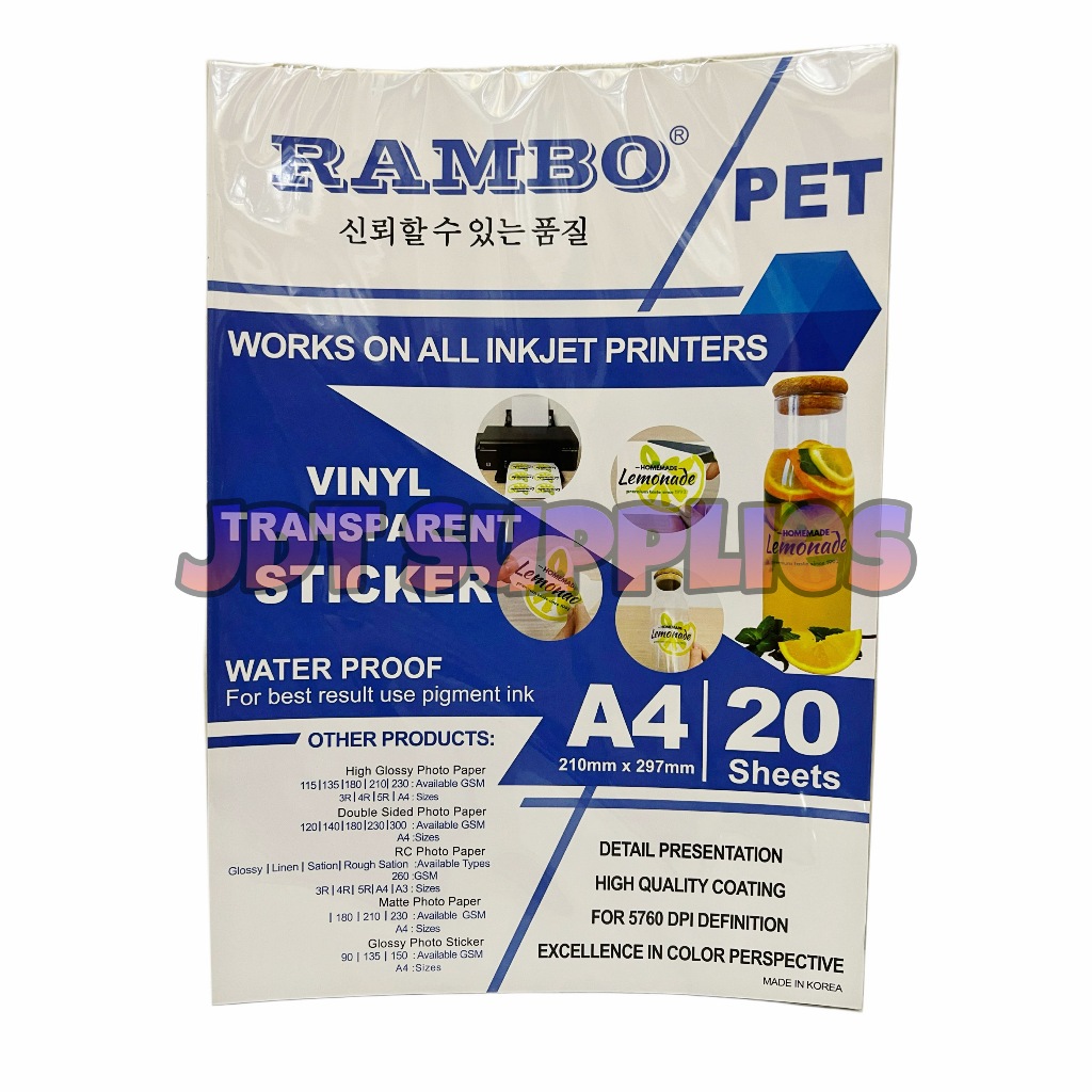 Rambo Vinyl Sticker Paper A4 - Glossy / Matte / Transparent [20 Sheets]
