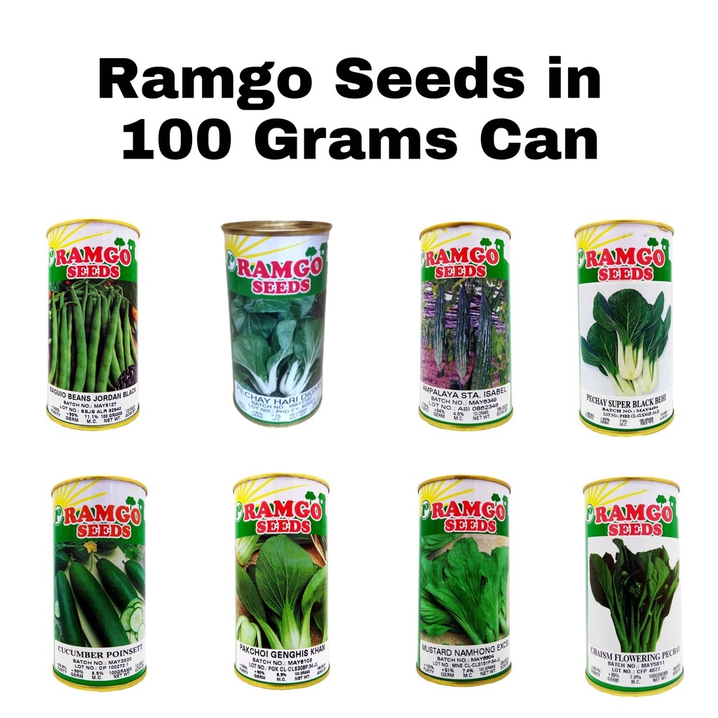 Ramgo Seeds in Can 100 grams (Ampalya, Beans, Cucumber, Mustard, Pechay)