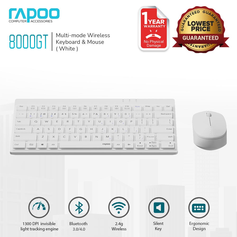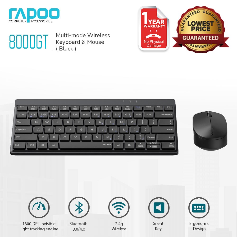 Rapoo 8000GT Wireless Keyboard and Mouse Set with Slim Design and Precise Scissor Switch Keycaps