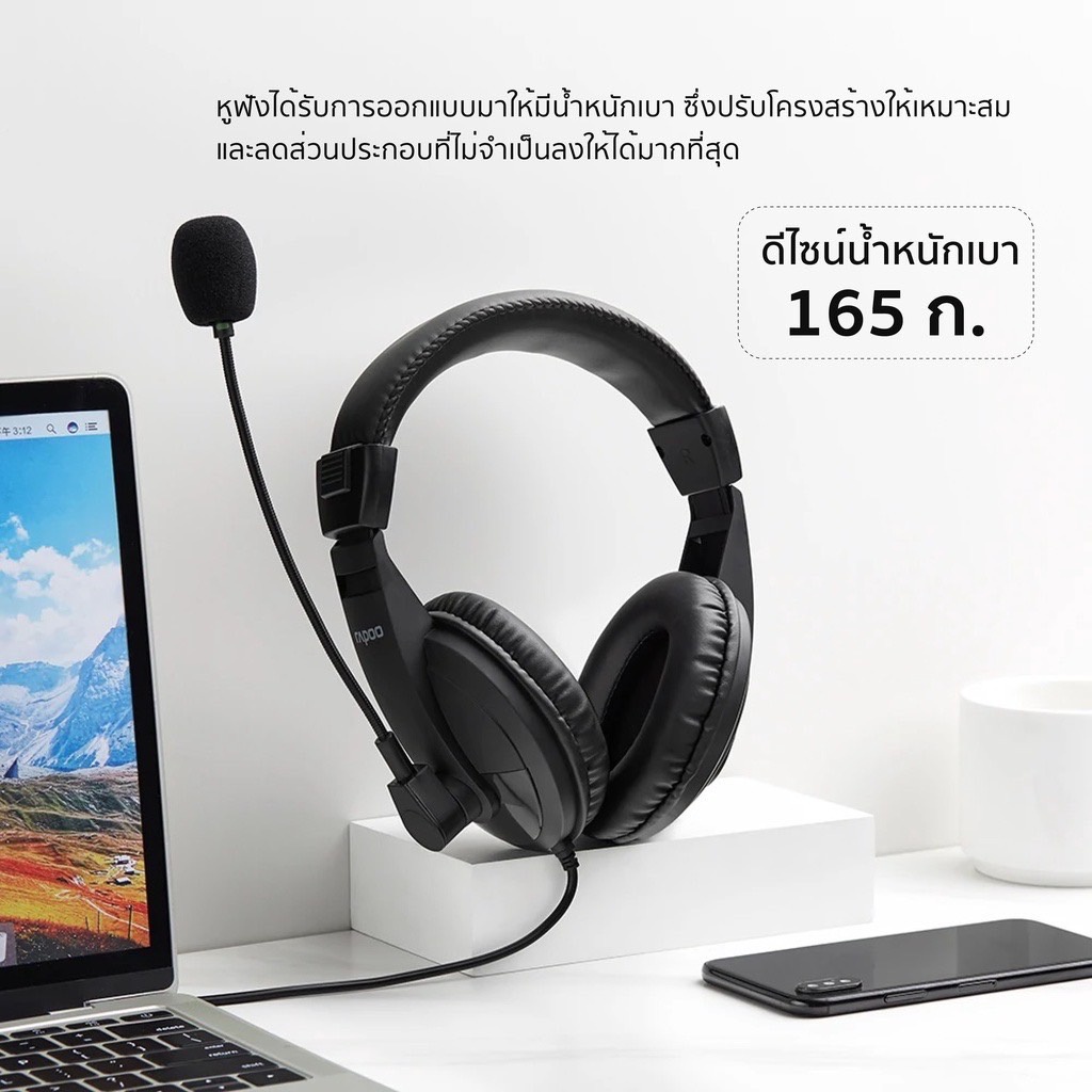 Rapoo H150 USB Stereo Headset Noise-Cancelling Mic (USB Wired 3.5 mm. Black) 1 Year Warranty