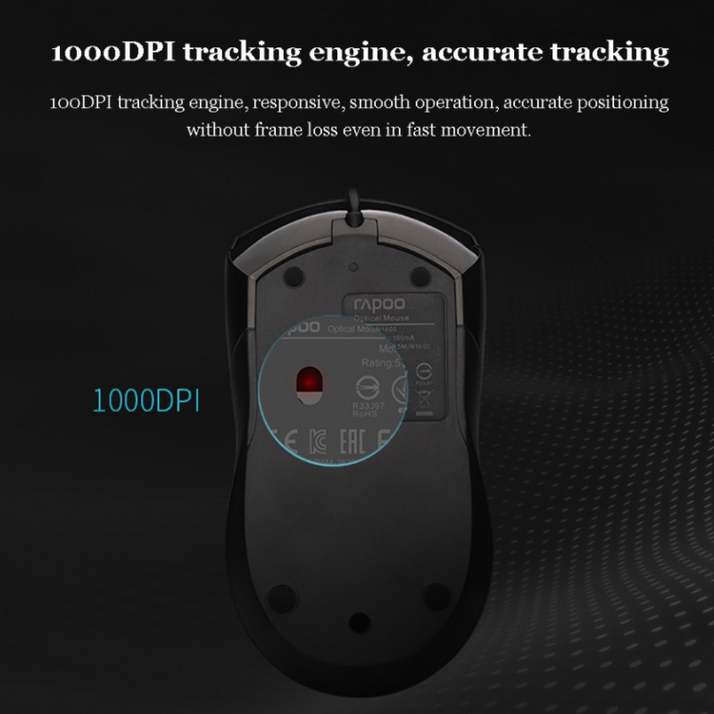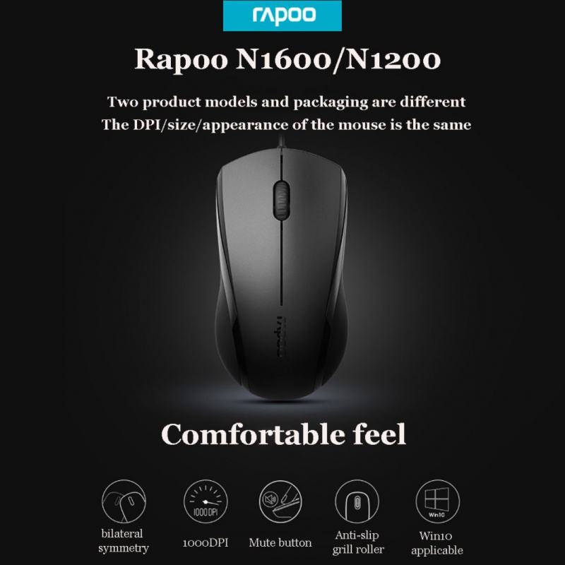 Rapoo N1600 Wired Silent Mouse 1000DPI Optical USB Gaming Mouse for Macbook Laptop Computer usb mause