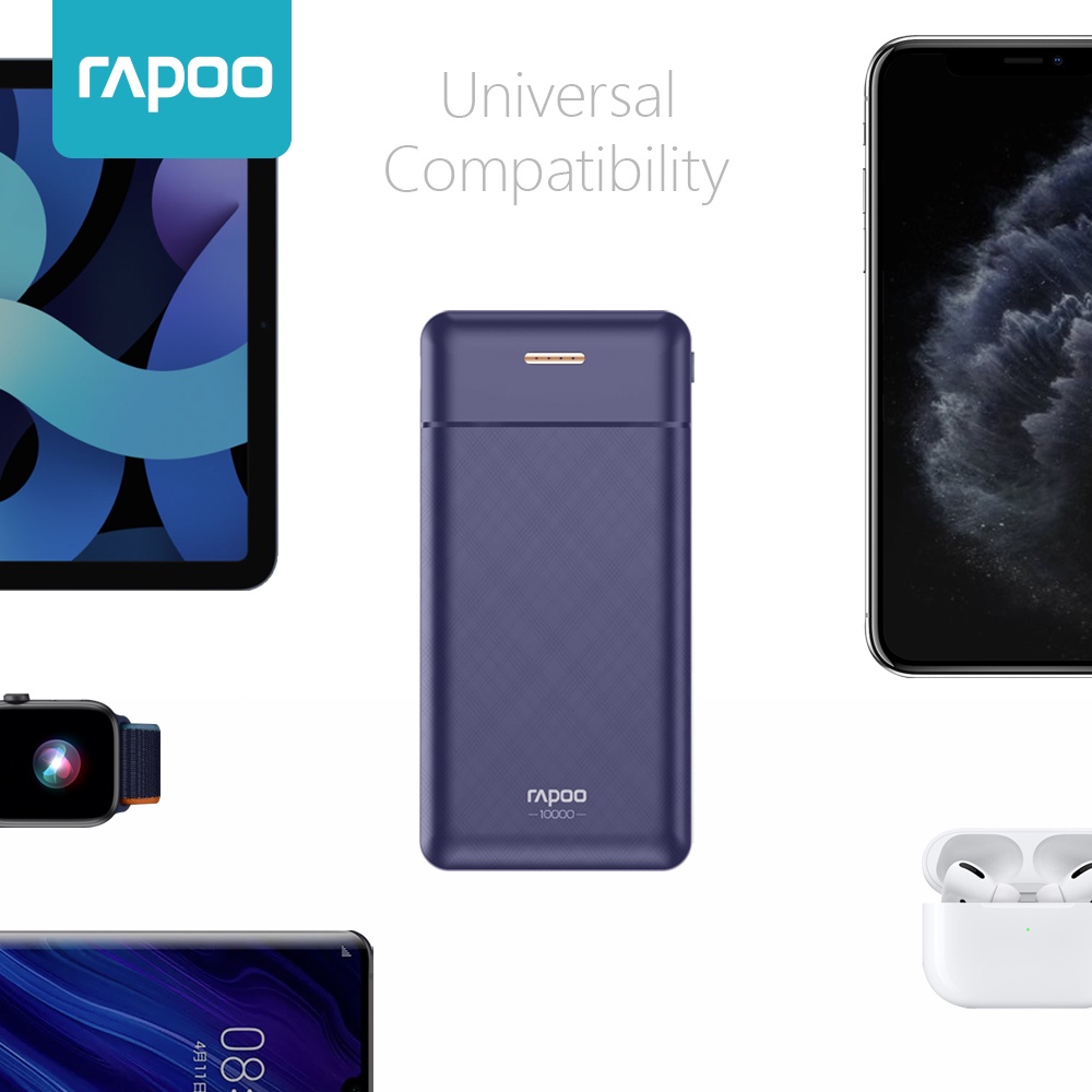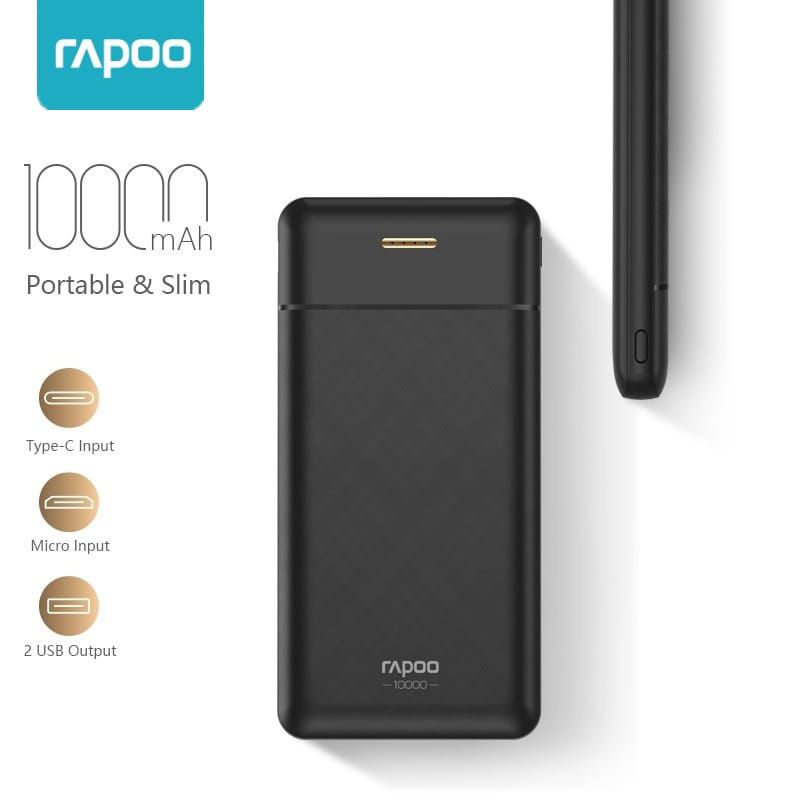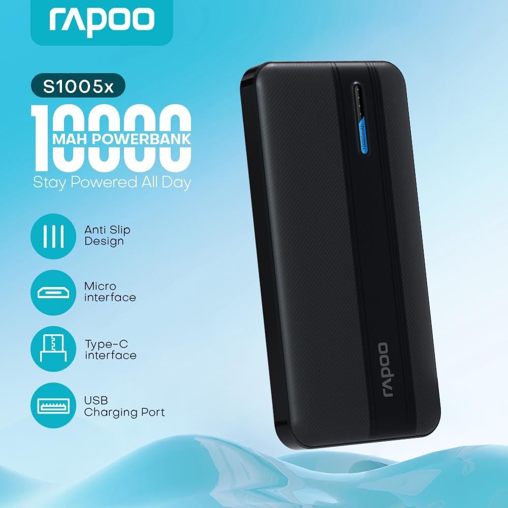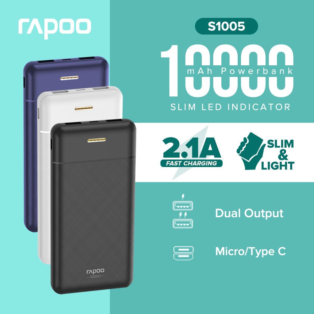 Rapoo S1005 10000mAh Powerbank Li Polymer Dual Output Fast Charge Slim Portable Powerbank Original