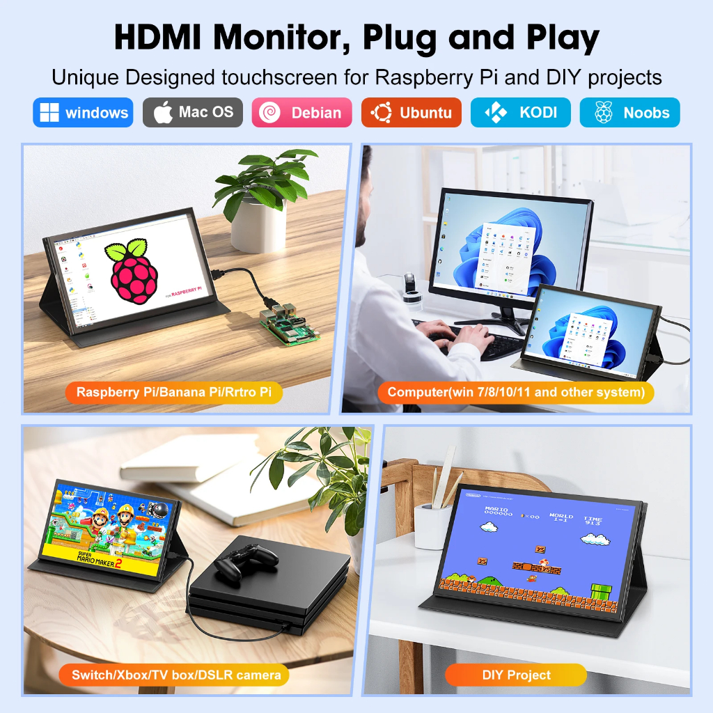 Raspberry Pi 13.3 Inch Touchscreen USB-C Gaming Display HD 1920x1080 Portable HDMI Monitor With Speaker For Laptop PC