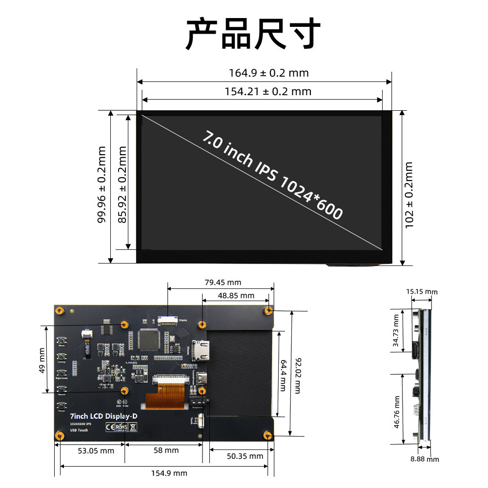 Raspberry Pi Display Screen7Inch HDMI Retractable Interface IPS Full View RaspberryPi5/4B LCD Screen