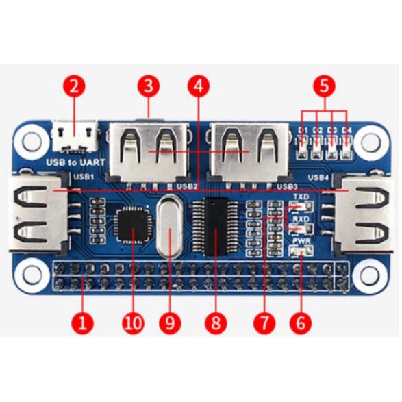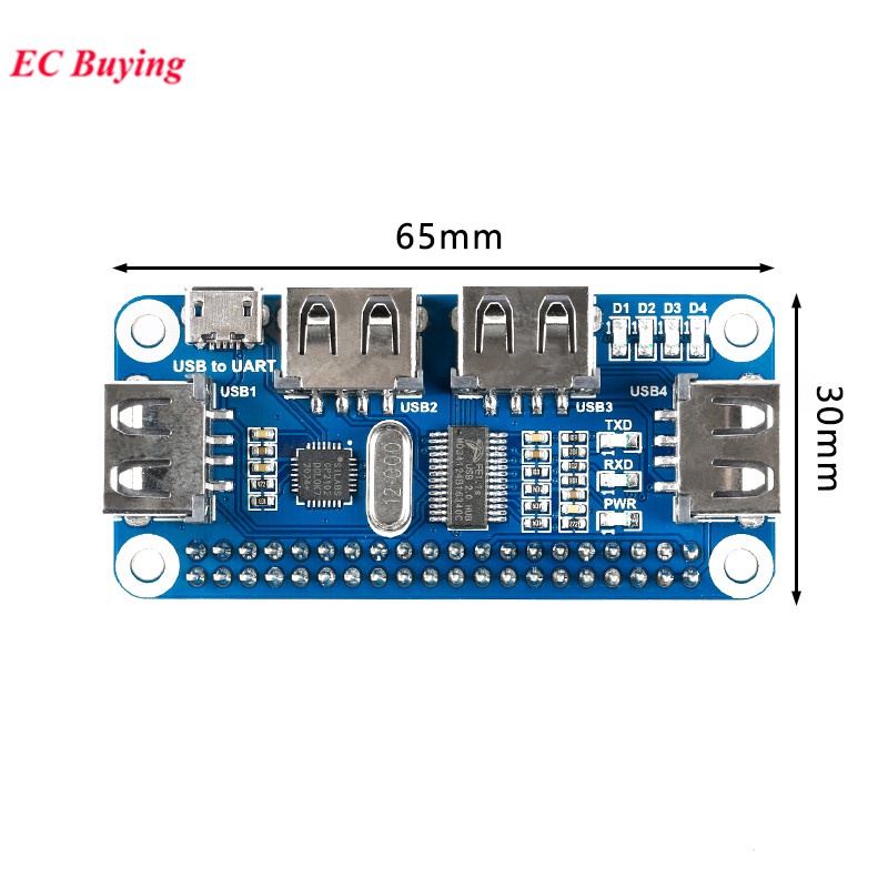 Raspberry Pi Zero/Zero W/Zero WH USB HUB HAT Development Board Expansion Module 4B/3B+/3A+/3B/2B/B+/A+ 4 Ports USB to UART GPIO